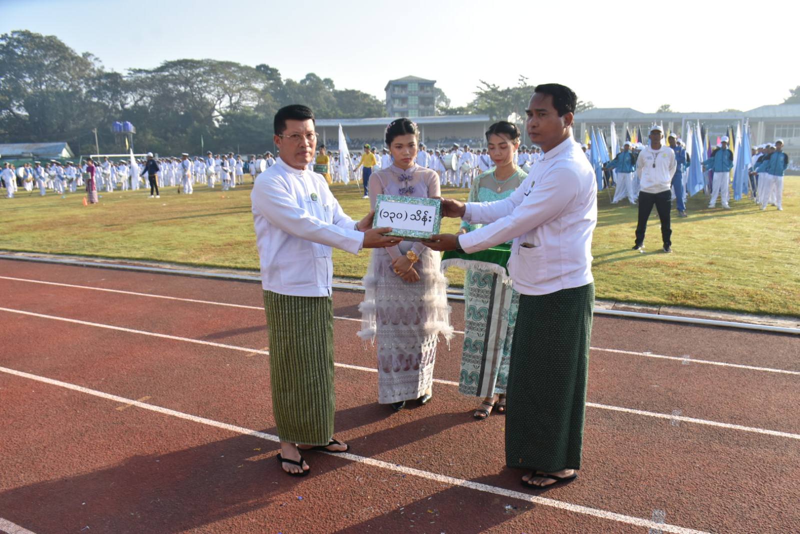 ဆက်လက်၍ စစ်ကြောင်းမှူးဦးဆောင်ကာ ဘင်ခရာအဖွဲ့၊ ပန်းပွားအကအဖွဲ့၊ ကဗျာလွတ်အကအဖွဲ့၊ ကာယအဖွဲ့၊ Fitness Exercises အဖွဲ့နှင့် တေးသရုပ်ဖော်အဖွဲ့များက ကွင်းအတွင်းမှ ပြန်လည်ထွက်ခွာပြီးနောက် တိုင်းဒေသကြီးဝန်ကြီးချုပ်နှင့် ဧည့်သည်တော်များသည် ပုသိမ်မြို့ပေါ်ရှိ အခြေခံပညာကျောင်းများမှ ကျောင်းသူ (၂၀၀)ဦးက အခြေခံကဗျာလွတ်အကဖြင့် ကပြဖျော်ဖြေမှု၊ အ.ထ.က(၂) ပုသိမ်မှ ကျောင်းသား၊ ကျောင်းသူ (၃ဝဝ)ဦးက ကာယပညာ အတွဲ(၃)ဖြင့် သရုပ်ပြသမှု၊ စိန့်ဂျွန်းကိုယ်ပိုင်အထက်တန်းကျောင်းမှ ကျောင်းသား/သူ (၂၀၀)ဦးက "အာရှမြန်မာ"သီချင်းဖြင့် PE-22 Fitness Exercises ကို သရုပ်ပြဖျော်ဖြေမှု၊ AD Myanmar မှကျောင်းသား/သူ (၁၀၀)ဦး၊ ပုသိမ်မြို့နယ်မှ မိဘ၊ ဆရာ/မ (၂ဝဝ)ဦးတို့က "စုံညီပွဲတော်တို့နွှဲပျော်" သီချင်းဖြင့် သရုပ်ဖော် ကပြဖျော်ဖြေမှုများကို ကြည့်ရှုအားပေးခဲ့ကြောင်း သိရသည်။