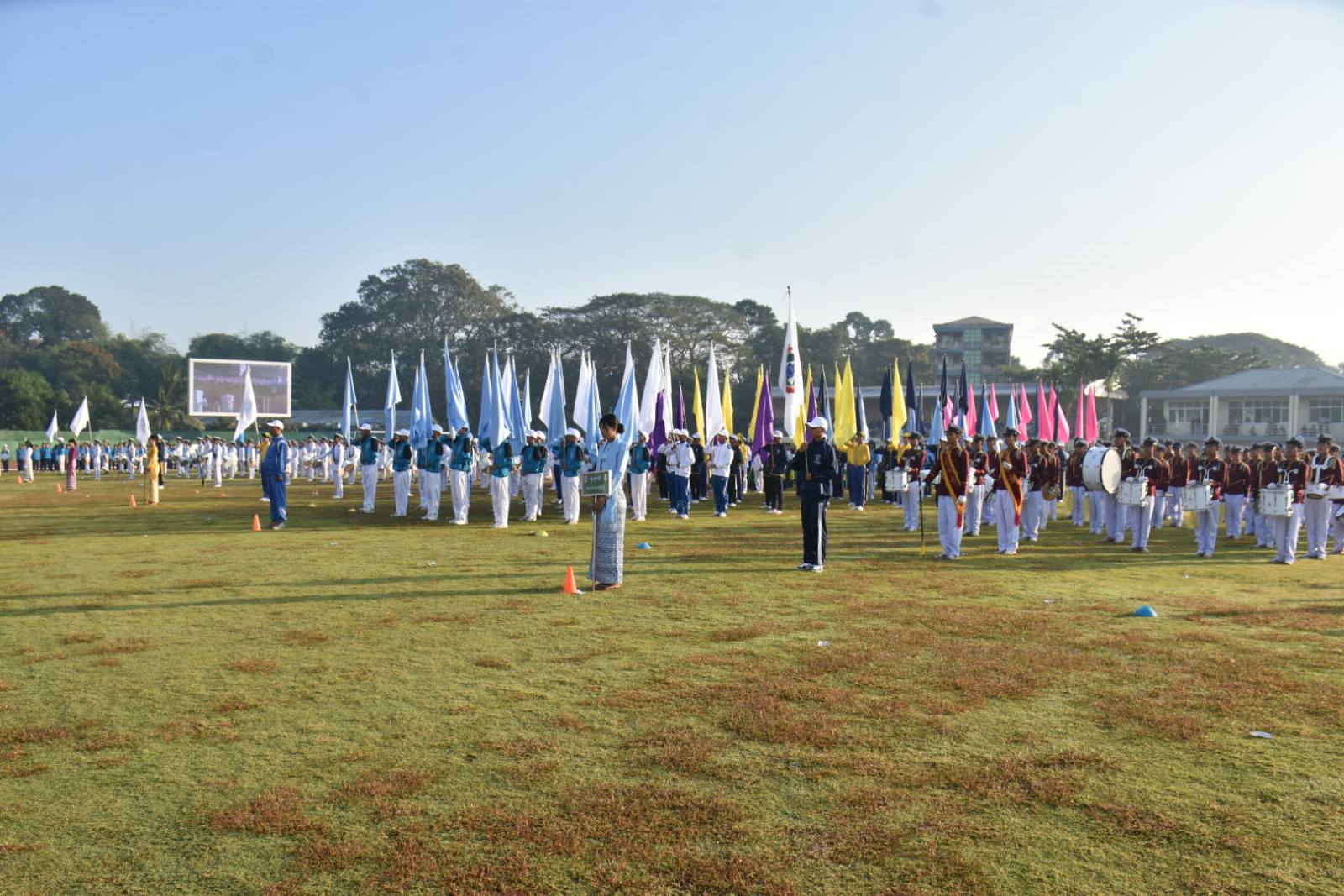 ၂၀၂၅-၂၀၂၆ ပညာသင်နှစ်၊ ဧရာဝတီတိုင်းဒေသကြီး ပညာရေးစုံညီပွဲတော် ဖွင့်ပွဲအခမ်းအနားကို ယမန်နေ့နံနက်ပိုင်းက ပုသိမ်မြို့၊ ကိုးသိန်းအားကစားကွင်းတွင်ပြုလုပ်ခဲ့ရာ အခမ်းအနားသို့ အခမ်းအနားသို့ တိုင်းဒေသကြီးဝန်ကြီးချုပ် ဦးတင်မောင်ဝင်းနှင့် ဇနီး၊ အစိုးရအဖွဲ့ဝင် ဝန်ကြီးများနှင့် ၎င်းတို့၏ဇနီးများ၊ ဌာနဆိုင်ရာများ၊ ကျောင်းသား၊ ကျောင်းသူများ တက်ရောက်ခဲ့ကြသည်။