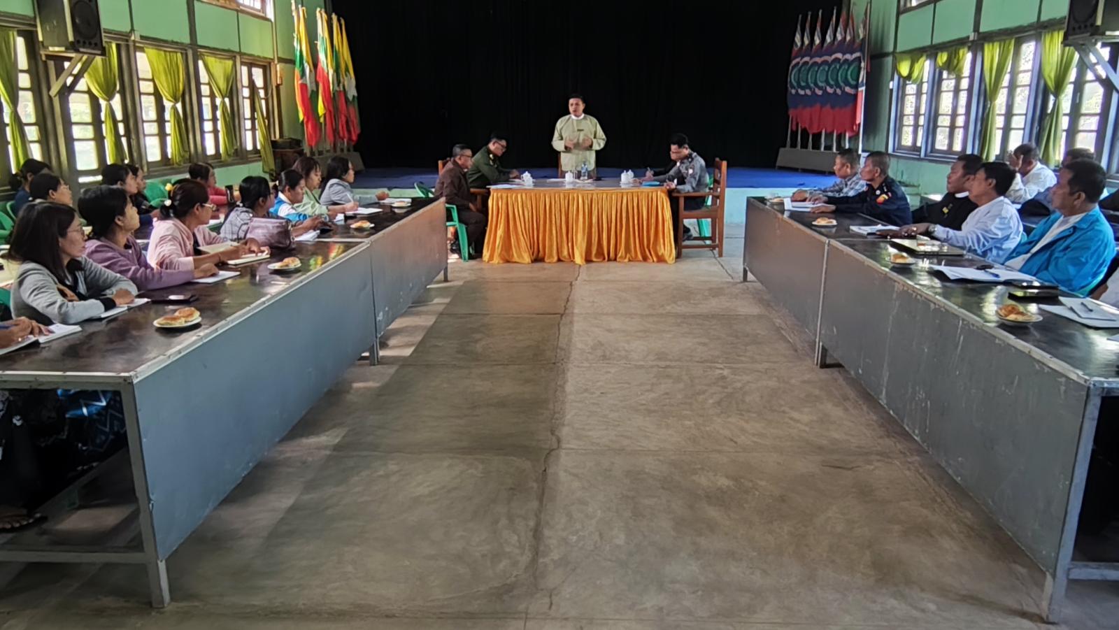 ရှေးဦးစွာ မြို့နယ်စီမံခန့်ခွဲရေးနှင့်အုပ်ချုပ်ရေးကော်မတီဥက္ကဋ္ဌ ဦးအောင်ဇော်မင်းက ပါတီစုံဒီမိုကရေစီအထွေထွေရွေးကောက်ပွဲတွင် မဲဆန္ဒရှင်ပြည်သူများ အချိန်တိုအတွင်းဆန္ဒမဲပေးနိုင်ရေးအတွက် ဆောင်ရွက်ရမည့် အစီအစဉ်များကို မဲရုံတာဝန်ကျဝန်ထမ်းများကပူပေါင်း ဆောင်ရွက်နိုင်ရေးစီစဉ်ထားရန်မှာကြားပြီး မြို့နယ်ရွေးကောက်ပွဲကော်မရှင်ဥက္ကဋ္ဌ ဦးရဲနိုင်စိုးက ရွေးကောက်ပွဲနေ့တွင် အကြောင်းအမျိုးမျိုးကြောင့် တာဝန်မထမ်းဆောင်နိုင်သည့် ဝန်ထမ်းများအတွက် အစားထိုးတာဝန်ထမ်းဆောင်ရန် အရန်ဝန်ထမ်းစီစဉ်မှုအခြေအနေများ၊ မြို့နယ်စီမံခန့်ခွဲရေးနှင့်အုပ်ချုပ်ရေးကော်မတီ အဖွဲ့ဝင်(၁) ဗိုလ်မှူးစိုင်းခန့်နိုင်က လုံခြုံရေးဆိုင်ရာကိစ္စရပ်များ၊ မြို့နယ်လူဝင်မှုကြီးကြပ်ရေးနှင့်ပြည်သူ့အင်အားဦးစီးဌာန မြို့နယ်ဦးစီးမှူး ဦးကျော်စိုးက ဆန္ဒမဲပေးပိုင်ခွင့်ရှိသူတိုင်း မဲပေးခွင့်မဆုံးရှုံးစေရေးအတွက် နိုင်ငံသားစိစစ်ရေးကတ်ပြားများ ဆောင်ရွက်ပေးမည့် အခြေအနေများကို အသီးသီးဆွေးနွေးခဲ့ကြသည်။