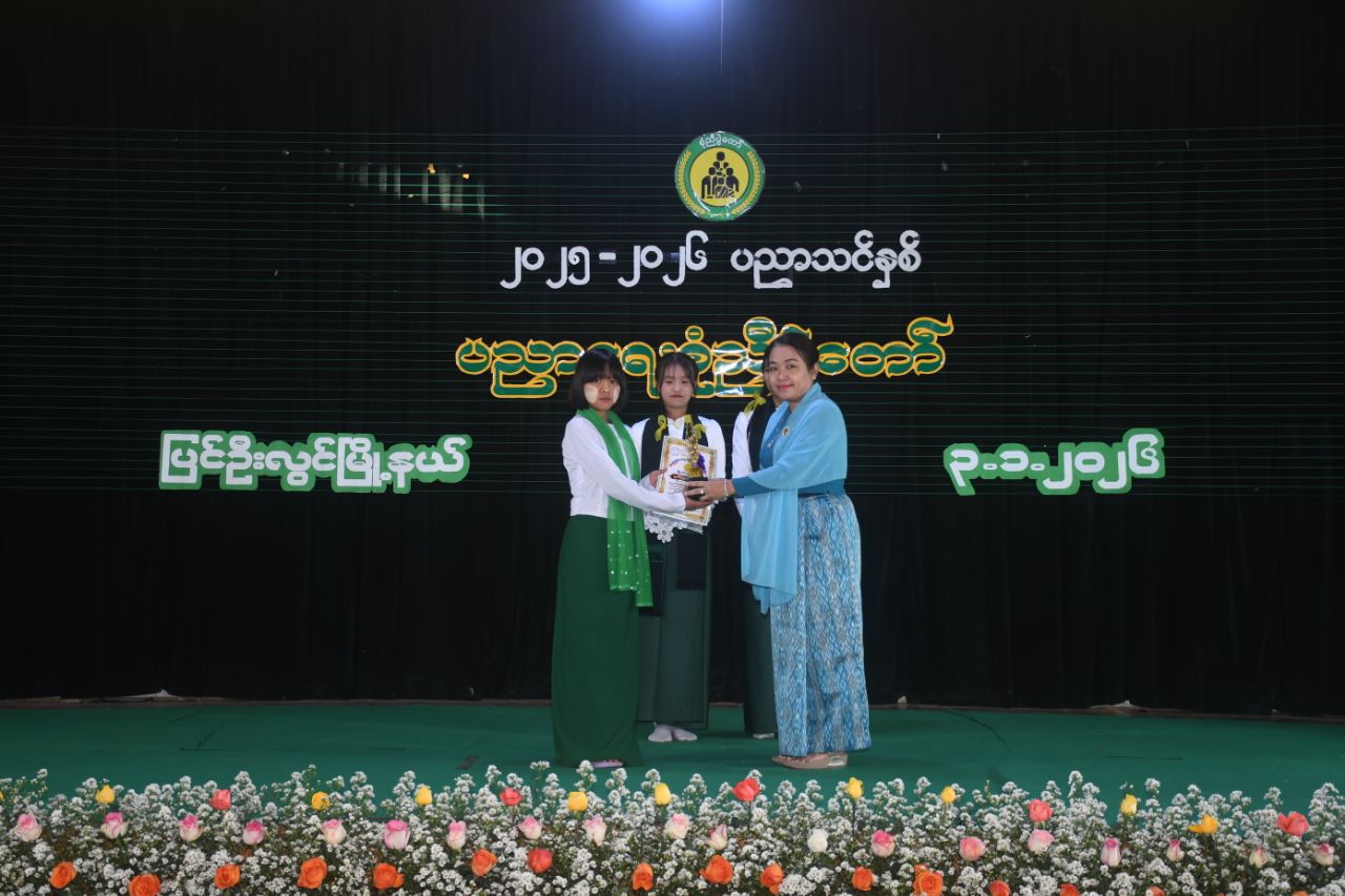 ဆက်လက်၍ အ.ထ.က(ခွဲ)အ.လ.က(၁)မှ ကျောင်းသား/ကျောင်းသူလေးများက တေးသီချင်းများ ကပြဖျော်ဖြေခဲ့ကြပြီးနောက် ခရိုင်ပညာရေးမှူး ဦးကျော်ကျော်မွန်က၂၀၂၄-၂၀၂၅ ပညာသင်နှစ်၊ တက္ကသိုလ်၀င်တန်းအောင်ချက် အများဆုံးကျောင်းများ၊ မြို့နယ်ပညာရေးမှူး ဒေါက်တာမြတ်စိုးမိုးက သန့်ရှင်း၍ စိမ်းလန်းစိုပြည်သော ကျောင်းဆု (Clean& Green School Award) ရရှိသော ကျောင်းများနှင့် ထူးချွန်ဆုရရှိသူများအား တာဝန်ရှိသူများက ဆုများပေးအပ်ချီးမြှင့်ခဲ့သည်။ ဆက်လက်၍ အမှတ်(၅)အခြေခံပညာအထက်တန်းကျောင်းမှ ကျောင်းသား/ ကျောင်းသူများက တေးသီချင်းများဖြင့်ဖျော်ဖြေခဲ့ကြောင်း သိရသည်။