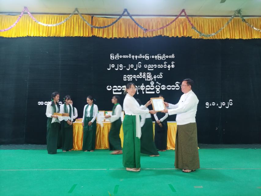 ဆက်လက်၍ နေပြည်တော်ကောင်စီဝင် ဦးဇေယျာလင်း၊ မြို့နယ်စီမံခန့်ခွဲရေးနှင့်အုပ်ချုပ်ရေးကော်မတီဥက္ကဋ္ဌ ဦးရဲမြတ်သိန်းနှင့် အဖွဲ့ဝင်များ၊ ဒုတိယမြို့နယ်ပညာရေးမှူးများ၊ အခြေခံပညာကျောင်းများမှ ကျောင်းအုပ်ဆရာကြီး၊ ဆရာမကြီးများနှင့် တာဝန်ရှိသူများက ကျောင်းသန့်ရှင်းရေးအကောင်းဆုံးဆုရ ကျောင်းအုပ်ဆရာကြီး၊ ဆရာမကြီးများ၊ တိုင်း၊ ခရိုင်၊ မြို့နယ်အဆင့် များတွင် အားကစားထူးချွန်ဆုရရှိသူများ၊ အထိမ်းအမှတ်နေ့ ပြိုင်ပွဲများ၊ ကျောင်းသားအားကစား ပြိုင်ပွဲများနှင့် အတန်းအလိုက် ဘာသာရပ်ထူးချွန်ဆုရရှိသူ ဆရာ၊ ဆရာမများနှင့် ကျောင်းသား၊ ကျောင်းသူများအား ဂုဏ်ပြုမှတ်တမ်းနှင့် ဂုဏ်ပြုဆုငွေများ အသီးသီး ပေးအပ်ချီးမြှင့်ခဲ့ကြသည်။