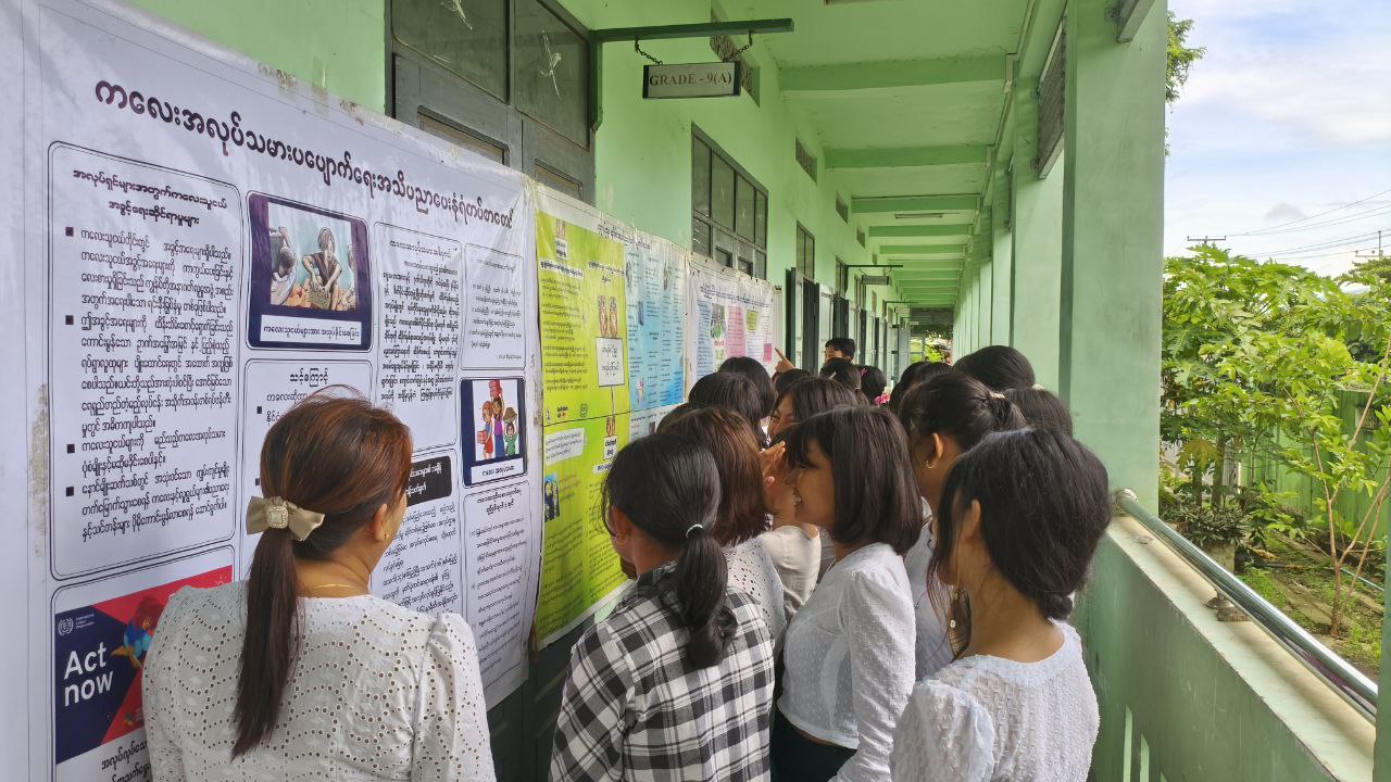 ဆက်လက်၍ ပြန်ကြားရေးနှင့်ပြည်သူ့ဆက်ဆံရေးဦးစီးဌာနဝန်ထမ်းများမှ ကျောင်းသား၊ ကျောင်းသူလေးများအား အသိပညာဗဟုသုတရရှိစေရန် အသိပညာပေးနံရံကပ်စာစောင်များ ပြသခဲ့ကြောင်းသိရသည်။