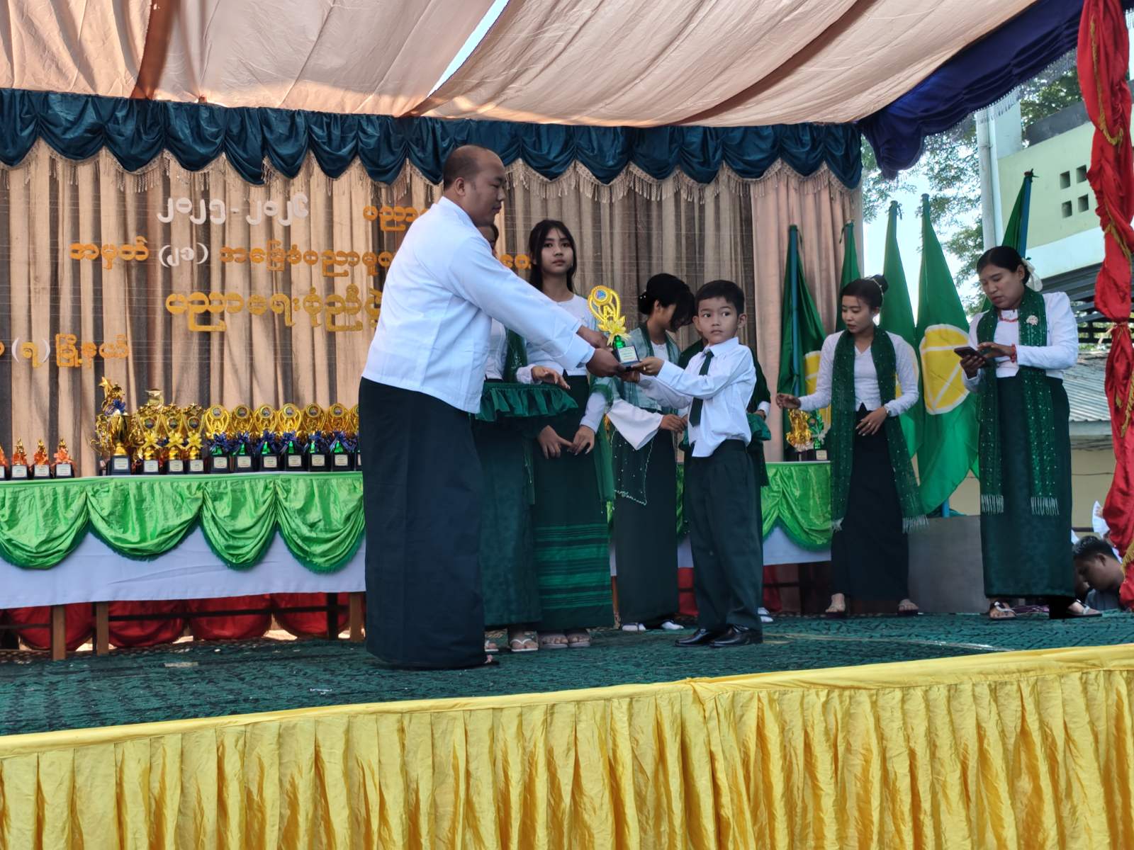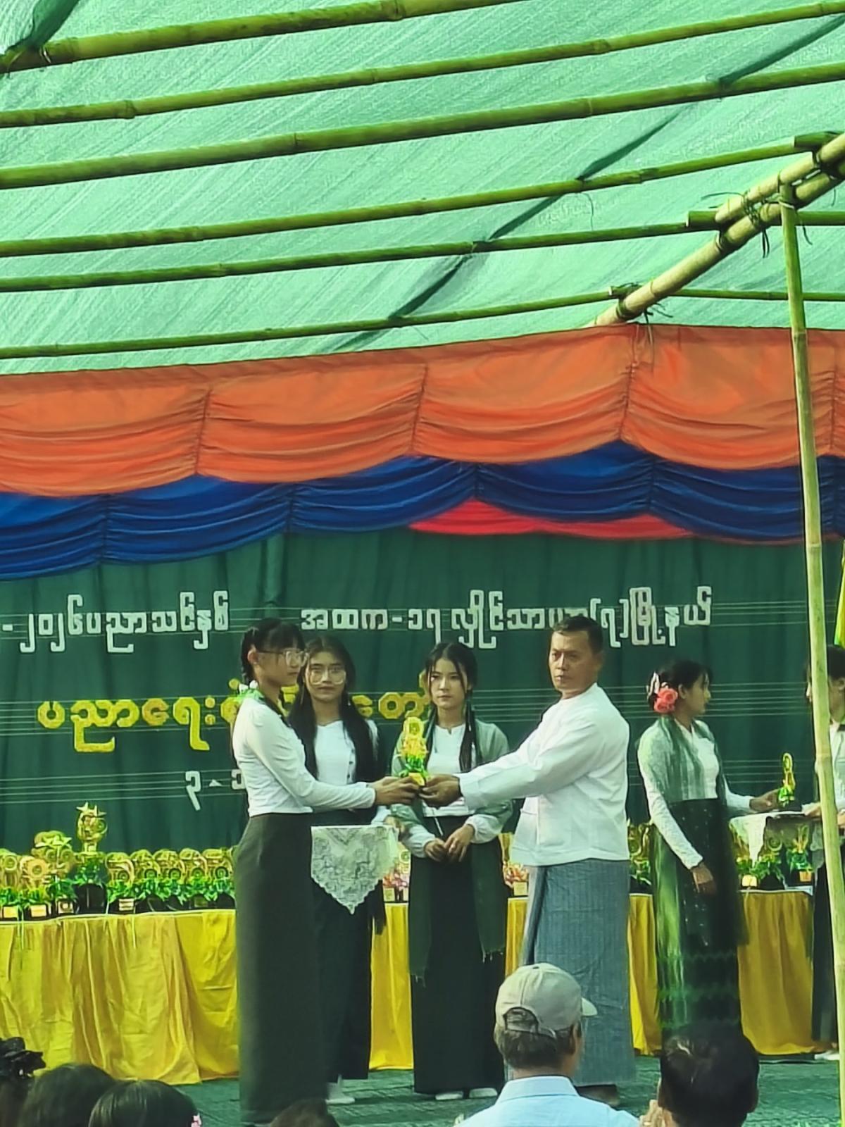 ဆက်လက်၍ ၂၀၂၅-၂၀၂၆ ပညာသင်နှစ်စုံညီပွဲတော်တွင် ကျောင်းတက်ရက်မှန်ဆု၊ ဉာဏထူးချွန်ဆု၊ ကာယထူးချွန်ဆုနှင့် အားကစားထူးချွန်ဆုရ ကျောင်းသား၊ ကျောင်းသူများအား တာ၀န်ရှိသူများက ဂုဏ်ပြုလက်ဆောင်များနှင့် ဆုများ အသီးသီးပေးအပ်ချီးမြှင့်လျက်ရှိပြီး ကျောင်းသား၊ ကျောင်းသူလေးများက တေးသီချင်းများဖြင့် သီဆိုကပြဖျော်ဖြေကြသည်။