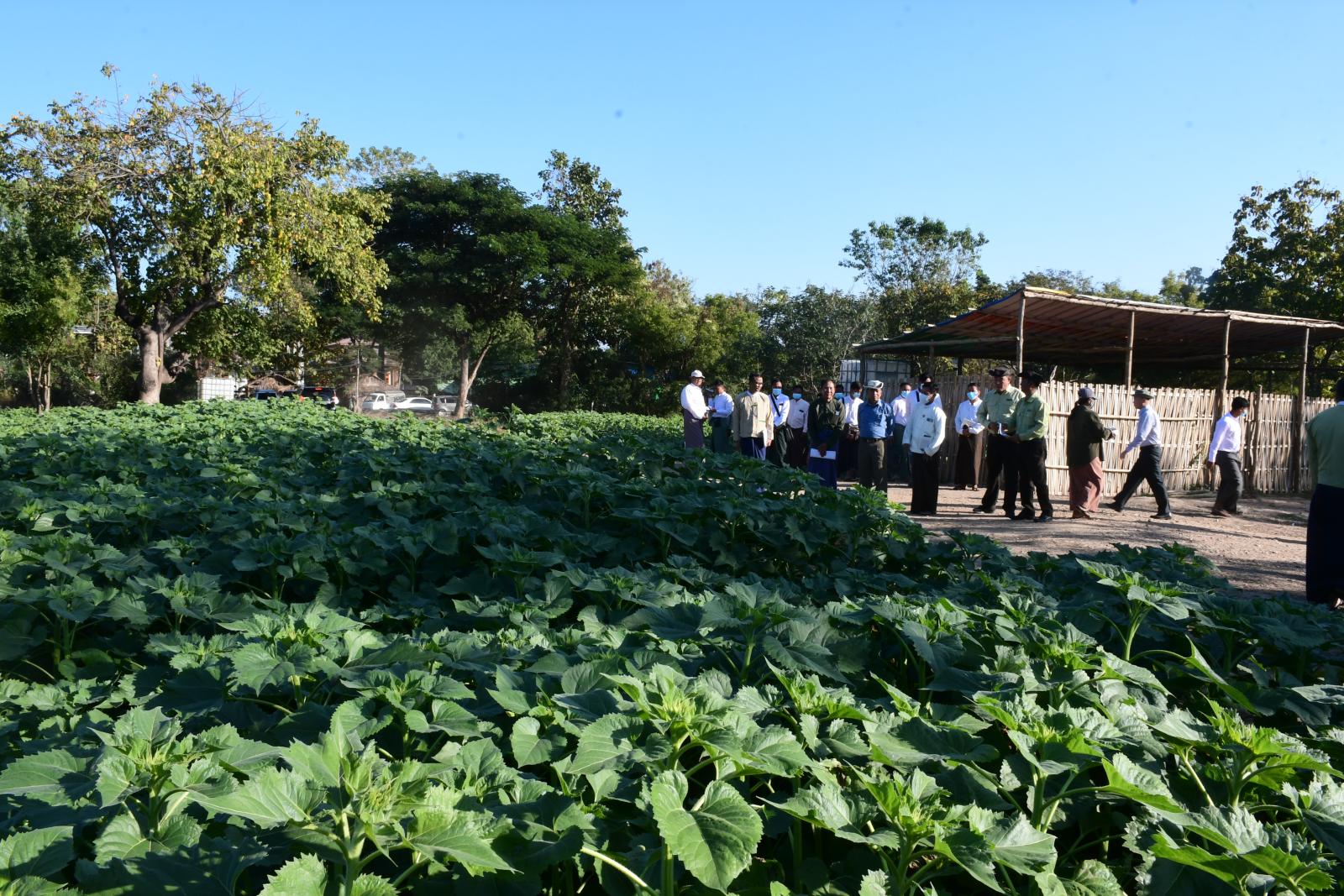 ယင်းနောက် နေပြည်တော်ကောင်စီဥက္ကဋ္ဌက ပိုက်ဆံလျှော် (သစ်စိမ်းမြေသြဇာ) များကိုလည်းကောင်း၊ နေပြည်တော်ကောင်စီဝင်များက နေကြာမျိုးစေ့များကိုလည်းကောင်း တောင်သူများထံ ထောက်ပံ့ပေးအပ်ကြပြီး နည်းပညာသစ် စက်ကရိယာများဖြင့် မြေဆီလွှာ ပြုပြင်ဆောင်ရွက်နေမှုကွင်းသရုပ်ပြခြင်းအား ကြည့်ရှုအားပေးကာ တက်ရောက်လာသည့် တောင်သူများမှ တင်ပြချက်များအပေါ် သက်ဆိုင်ရာဌာနများနှင့် ပေါင်းစပ်ဆောင်ရွက်ပေးခဲ့သည်။