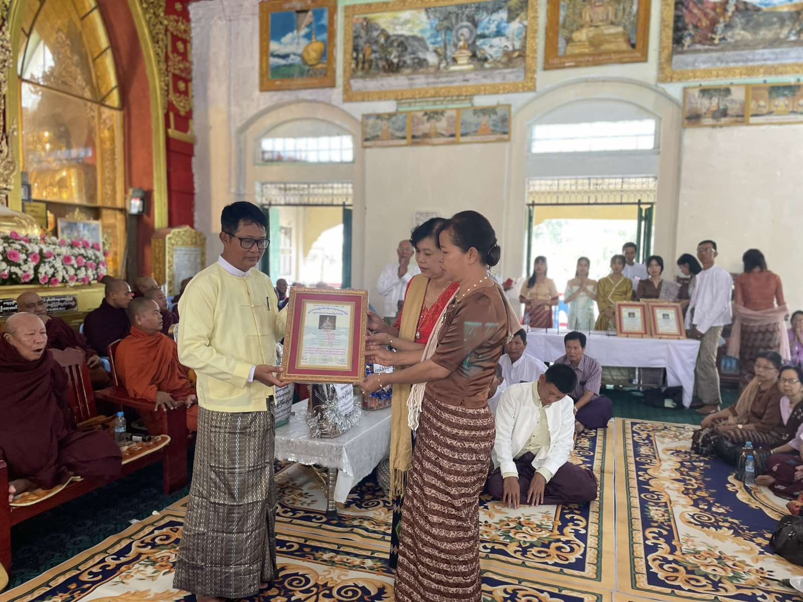 အဆိုပါ အခမ်းအနားတွင် ရန်ကုန်မြို့၊ ရွှေဂုံတိုင်ကျောင်းဆရာတော် ဘဒ္ဒန္တဣန္ဒြောဘာသ အရှင်သူမြတ်က အနုမောဒနာတရား ဟောကြားပေးခဲ့ပြီးနောက် အလှူရှင်များအား ဂုဏ်ပြုမှတ်တမ်းလွှာပေးအပ်ခြင်းနှင့် သံဃာတော်အရှင်သူမြတ်(၁၁၀)ပါးအား ဆွမ်းဆန်စိမ်းလောင်းလှူခဲ့ကြပြီး အခမ်းအနားသို့ တက်ရောက်လာသူများမှ ဗုဒ္ဓသာသနံစိရံတိဌတု (၃)ကြိမ်ရွတ်ဆိုပြီး အခမ်းအနားပိတ်သိမ်းခဲ့ကြောင်း သိရသည်။