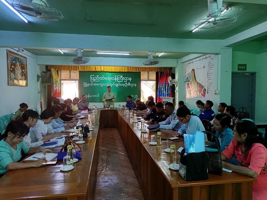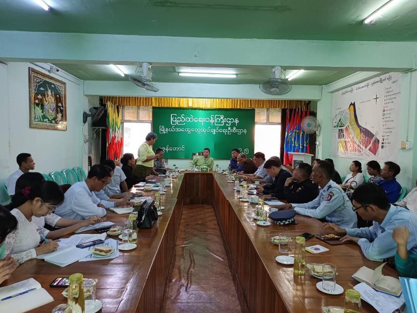ဆက်လက်ပြီး မြို့နယ်ရွေးကောက်ပွဲကော်မရှင်အဖွဲ့ခွဲအတွင်းရေးမှူး ဒေါ်သန္တာသိမ့်က ရွေးကောက်ပွဲနှင့် ပတ်သက်သည့် လုပ်ငန်းဆောင်ရွက်ချက်များကိုလည်းကောင်း၊ တက်ရောက်လာကြသော ဌာနဆိုင်ရာတာဝန်ရှိသူများက ရွေးကောက်ပွဲနှင့် စပ်လျဉ်း၍ ဆွေးနွေးကြရာ မြို့နယ်စီမံခန့်ခွဲရေးနှင့် အုပ်ချုပ်ရေးကော်မတီဥက္ကဋ္ဌနှင့် အဖွဲ့ဝင်များ၊ မြို့နယ်ရွေးကောက်ပွဲကော်မရှင်အဖွဲ့ခွဲအတွင်းရေးမှူးတို့မှ ညှိနှိုင်းဆောင်ရွက်ပေးခဲ့ကြကြောင်း သိရသည်။