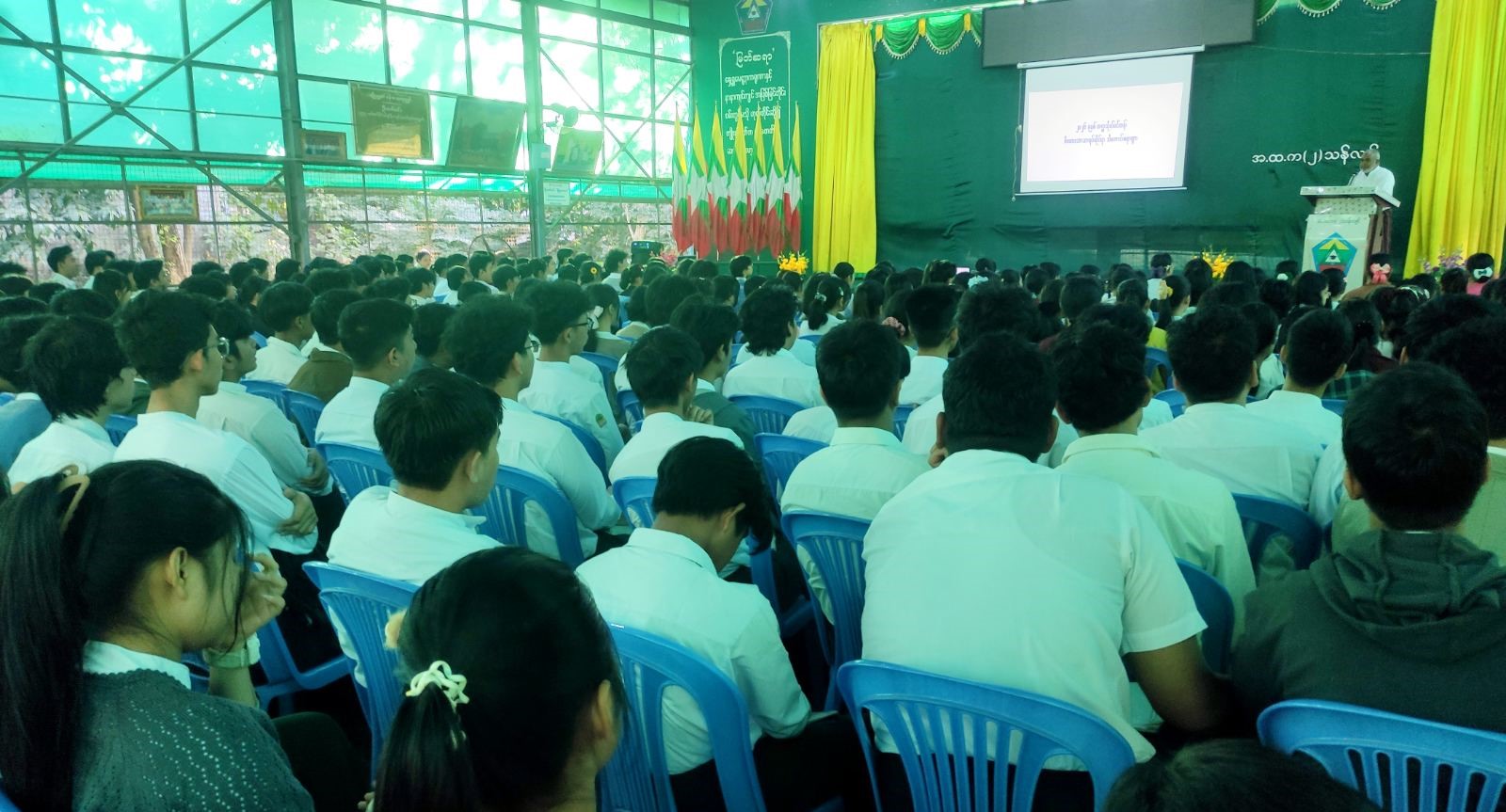 ၂၀၂၅-၂၀၂၆ ပညာသင်နှစ် တက္ကသိုလ်ဝင်တန်းအောင်ချက်မြင့်မားရေးအတွက် သန်လျင်မြို့နယ်အတွင်းရှိ အ.ထ.က (၂)၊ အ.ထ.က (၃)၊ အ.ထ.က (၄) ကျောင်းများမှ Grade 12 ကျောင်းသား၊ ကျောင်းသူများအား ဘာသာရပ်ဆိုင်ရာများ ဆွေးနွေးပို့ချခြင်းကို ယနေ့နံနက် ၉ နာရီတွင် သန်လျင်မြို့ အမှတ် (၂) အခြေခံပညာအထက်တန်းကျောင်း ဘိုးရာဇာခန်းမ၌ ပြုလုပ်ခဲ့သည်။