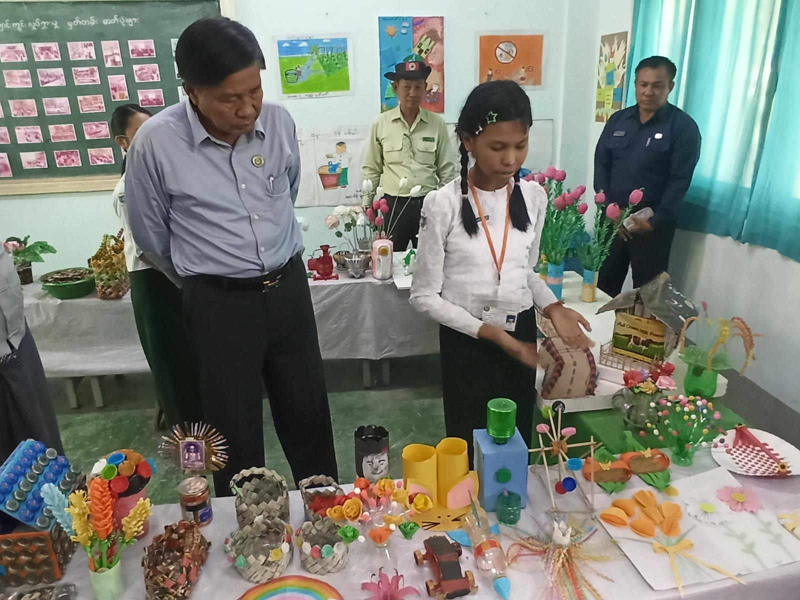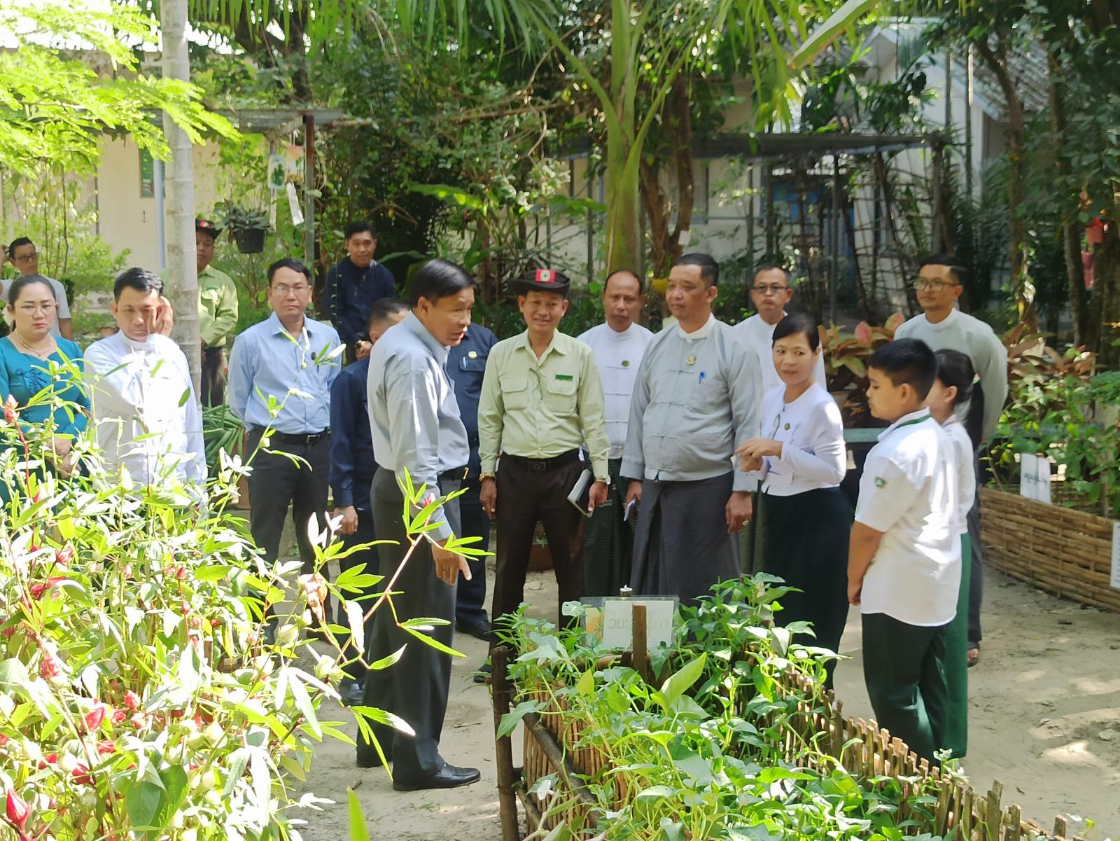 ဦးစွာ ရန်ကုန်တိုင်းဒေသကြီးအစိုးရအဖွဲ့ သယံဇာတရေးရာဝန်ကြီး ဦးဇော်ဝင်းနှင့် အဖွဲ့ဝင်များအား အမှတ် (၁၅) အခြေခံပညာမူလတန်ကျောင်း ကျောင်းအုပ်ဆရာမကြီး ဒေါ်ချောစုထွေးက ကျောင်းဥယျာဥ်အတွင်း သဘာဝသစ်ရွက်၊ မြေဆွေး၊ နွားချေးတို့ဖြင့် စိုက်ပျိုးထားသည့် သီးပင်စားပင်များ၊ အလှပန်းပင်များအား လှည့်လည်ကြည့်ရှုပြီး ကျောင်းပထမထပ်ရှိ ကျောင်းစာကြည့်တိုက်၊ ကျောင်းကျန်းမာရေးပြခန်း၊ ဘုရားခန်းနှင့် Recycle ပစ္စည်းများဖြင့် လက်တွေ့သရုပ်ပြခန်းတို့တွင် ကျောင်းသား၊ ကျောင်းသူများ နှုက်ဆက်ရှင်းပြသည်များအား ဝန်ကြီးနှင့် အဖွဲ့ဝင်များက စိတ်ပါဝင်စားစွာ ကြည့်ရှုအားပေးခဲ့သည်။ ထို့နောက် ကျောင်းအသုံးအဆောင်ပစ္စည်များအား ကျောင်းအုပ်ဆရာမကြီးထံသို့ ပေးအပ်ခဲ့သည်။ ထို့နောက် သယံဇာတရေးရာဝန်ကြီး ဦးဇော်ဝင်းက သစ်ပင်စိုက်ပျိုးရေးအား ကျောင်းသား၊ ကျောင်းသူများ စိတ်ပါဝင်စားအောင် ဆောင်ရွက်ရန်၊ ရောင်စုံအမှိုက်ပုံးများတွင် အမှိုက်ခွဲခြားစွန့်ပစ်တတ်စေရန်၊ ကျောင်းပတ်ဝန်းကျင်သန့်ရှင်းသပ်ရပ်ရေး ပူးပေါင်းဆောင်ရွက်ကြရန် မှာကြားခဲ့သည်။