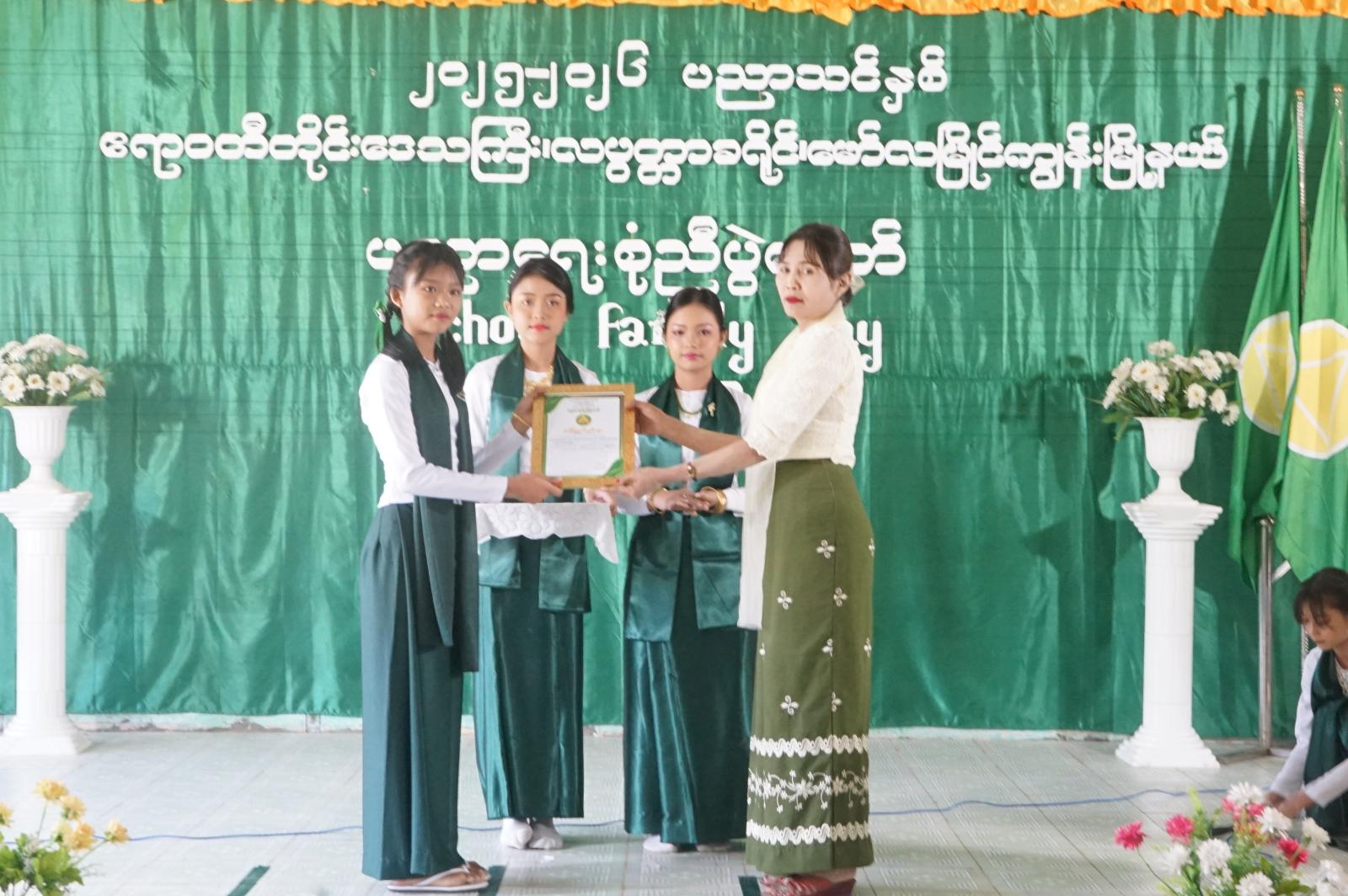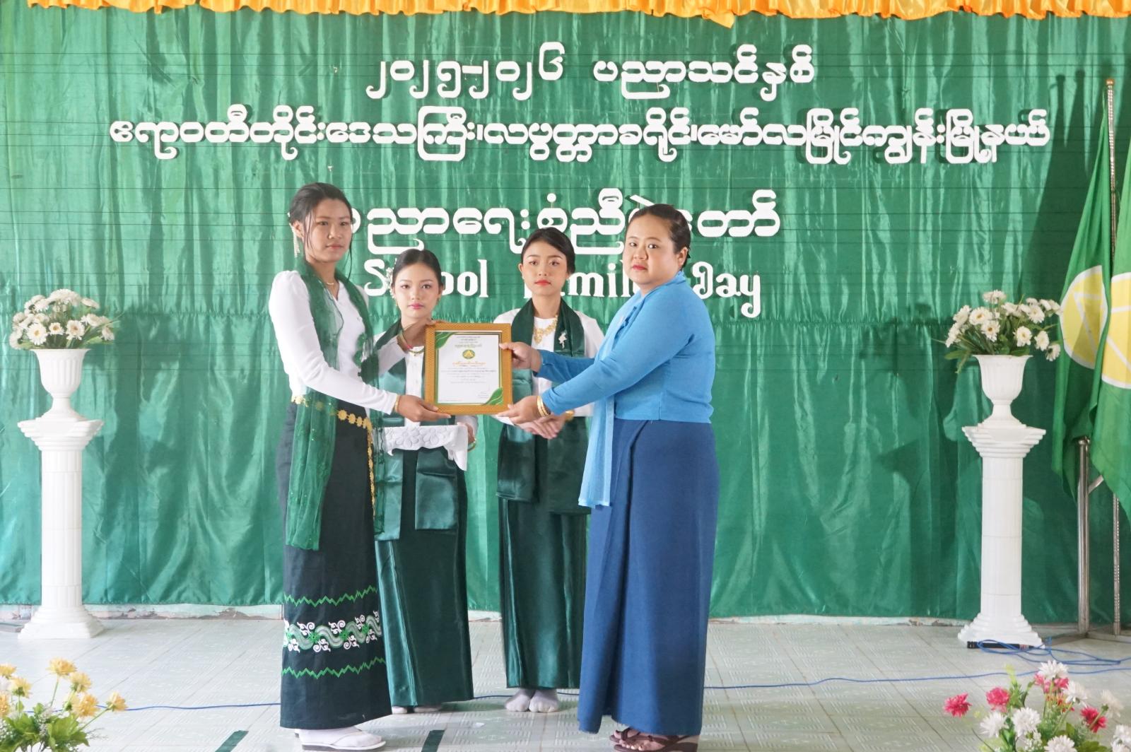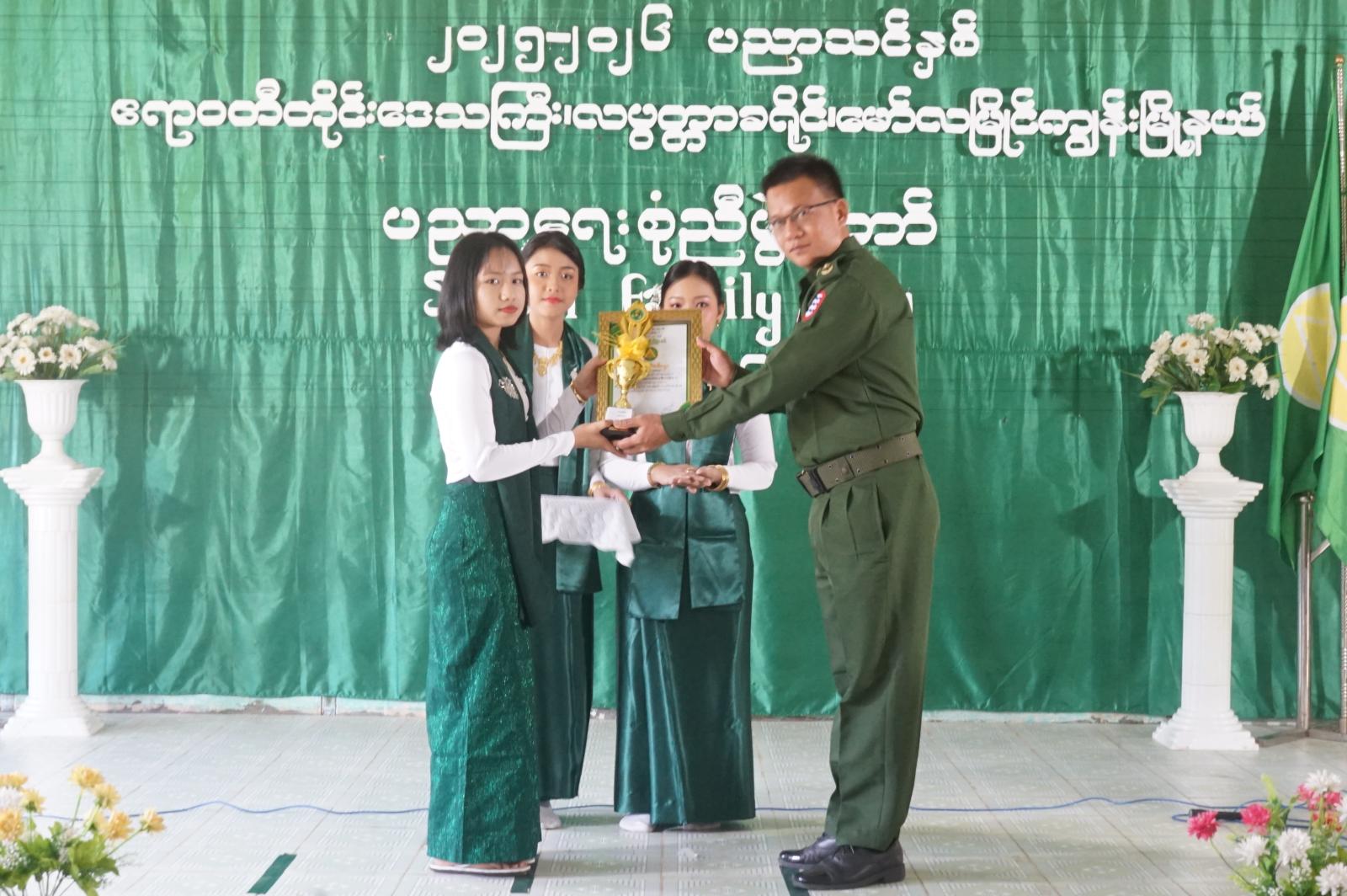 ထို့နောက် အ.ထ.က (၁) ကျောင်းသား/ သူလေးများက “စုံညီပွဲတေယ်တို့နွှဲပျော်” သီချင်းဖြင့်ကပြဖျော်ဖြေခဲ့ကြပြီး စာစီစာကုံး၊ ပန်းချီ၊ ကဗျာ၊ အင်္ဂလိပ်စာစွမ်းရည်၊ သင်္ချာစွမ်းရည်ပြိုင်ပွဲများ၊ လူရည်ထူးချွန်ဆုများ ရရှိသူများအား မြို့နယ်စီမံခန့်ခွဲရေးနှင့် အုပ်ချုပ်ရေးကော်မတီဥက္ကဋ္ဌ ဦးခင်မောင်ဦးနှင့်အဖွဲ့ဝင်များ၊ အမျိုးသမီးရေးရာနှင့် မိခင်နှင့် ကလေးစောင့်ရှောက်ရေးအသင်းအဖွဲ့ဝင်များက ဆုရကျောင်းသား/ သူများအား ဆုအသီးသီးချီးမြှင့်ပေးခဲ့ကြပြီး ကျောင်းသား/ ကျောင်းသူလေးများက “မန္တလာကိုကို”၊ “မှုံရွှေရည်”၊ “မောတို့ပြည်နယ်ရှမ်း”၊ “ပန်းကမ္ဘာမျှော်စင်”၊ “လောကအားမာန်”နှင့် “ပြည်မြန်မာ” စသည့် တေးသီးချင်များဖြင့် သရုပ်ပြ၊ ကပြဖျော်ဖြေခဲ့ကြကြောင်း သိရသည်။