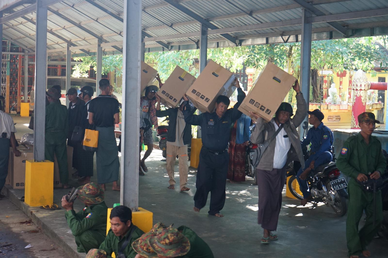 ဧရာဝတီတိုင်းဒေသကြီး၊ ဖျာပုံခရိုင်၊ ဘိုကလေးမြို့နယ်တွင် ပါတီစုံဒီမိုကရေစီအထွေထွေရွေးကောက်ပွဲအား ဇန်နဝါရီ(၁၁)ရက်နေ့တွင် ကျင်းပဆောင်ရွက်မည်ဖြစ်ရာ ဘိုကလေးမြို့နယ်အတွင်းရှိ မဲရုံ(၂၆၅)ရုံတွင် အသုံးပြုမည့်မဲပေးစက်များနှင့် ဆက်စပ်ပစ္စည်းများအား ဘိုကလေးမြို့လယ်ကျက်သရေဆောင် ချိုကြည်သာသနာ့ဗိမာန်အတွင်း ယနေ့နံနက်(၈)နာရီမှ စတင်၍ တာဝန်ရှိသူများမှ ရပ်ကွက်/ကျေးရွာအုပ်စု ကော်မရှင်အဖွဲ့ခွဲများထံ စနစ်တကျထုတ်ပေးခဲ့သည်။