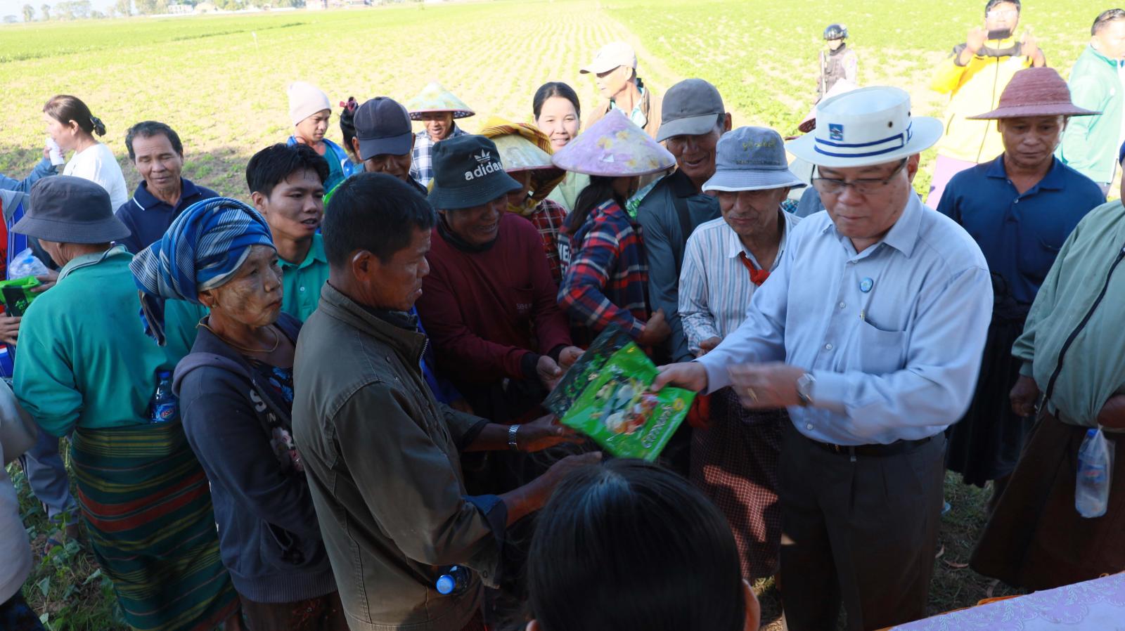 ထို့နောက် ပြည်နယ်ဝန်ကြီးချုပ်နှင့်တာဝန်ရှိသူများသည် ဆောင်းဆီထွက်သီးနှံစိုက်ခင်းဧရိယာအတွင်း စိုက်ပျိုးထားရှိသည့် ပဲတီစိမ်းစိုက်ခင်းများအား တောင်သူများက ရွက်ဖျန်းမြေဩဇာများ စုပေါင်း ပက်ဖျန်းခြင်းကို ကြည့်ရှုအားပေးပြီး ဘားအံမြို့နယ်၊ ဝါးဆူးကျေးရွာ အနောက်ဘက်ကွင်းရှိ ဆောင်းဆီထွက်သီးနှံ(မြေပဲ)စိုက်ခင်းအား ကြည့်ရှုအားပေးကာ တာဝန်ရှိသူများအား လိုအပ်သည်များ မှာကြားခဲ့သည်။