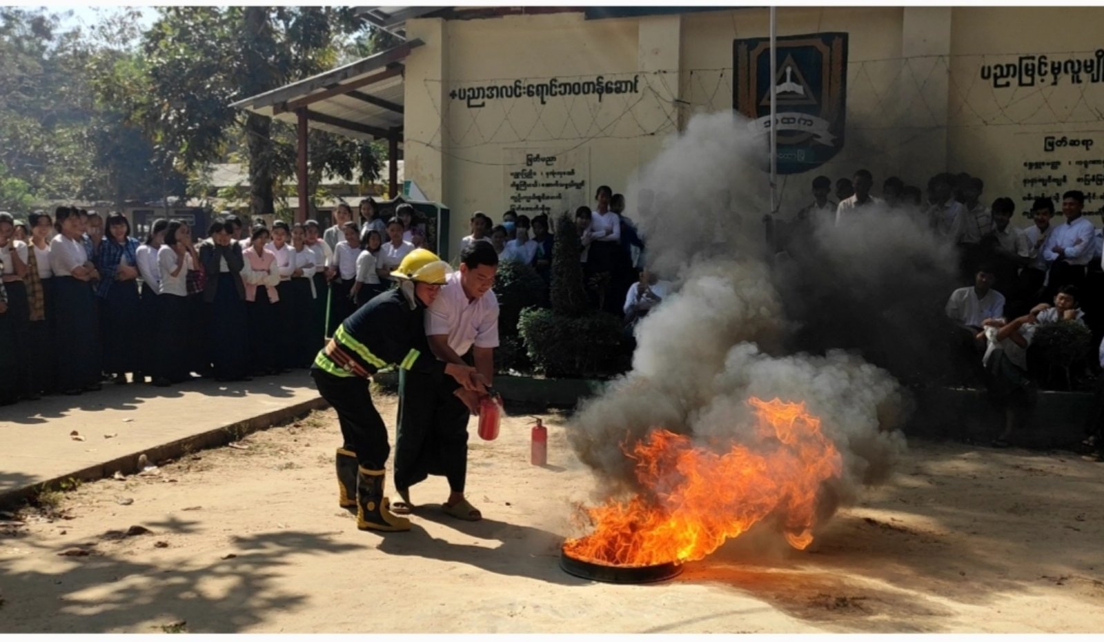 အသိပညာပေးဟောပြောပွဲတွင် မြို့နယ်မီးသတ်ဦးစီးဌာန မြို့နယ်မီးသတ်ဦးစီးအရာရှိ ဦးမင်းအောင်က မီးသတ်ဦးစီးဌာန၏ ရည်ရွယ်ချက်နှင့် ရည်မှန်းချက်တာဝန်ကြီး(၄)ရပ်၊ မီးဘေးအန္တရာယ်ကြောင့် ထိခိုက်နစ်နာဆုံးရှုံးမှု မရှိစေရေးအတွက် ကြိုတင်ကာကွယ်ရမည့် အချက်များ၊ မီးသတ်ဆေးဗူး၏အချက်အလက်များနှင့် အသုံးပြုပုံတို့ကို ဆရာ၊ ဆရာမများနှင့် ကျောင်းသား၊ ကျောင်းသူများအား ရှင်းလင်းပြောကြားခဲ့ပြီး မီးဘေးလုံခြုံရေးအသိပညာပေး လက်ကမ်းစာစောင်များကို ဆရာ၊ ဆရာမများနှင့် ကျောင်းသား၊ ကျောင်းသူများထံ ဖြန့်ဝေပေးခဲ့သည်။ ထို့နောက် မြို့နယ်မီးသတ်ဦးစီးအရာရှိ ဦးမင်းအောင်ဦးဆောင်သော သန္ဓေမီးသတ်တပ်ဖွဲ့ဝင်များက၊ ကျောင်းသား၊ ကျောင်းသူများအား ကိုယ်တိုင်မီးငြိမ်းသတ်နိုင်ရေး မီးသတ်ဆေးဘူးဖြင့် လက်တွေ့သရုပ်ပြဇာတ်တိုက်လေ့ကျင့်ပေးခဲ့ကြောင်း သိရသည်။