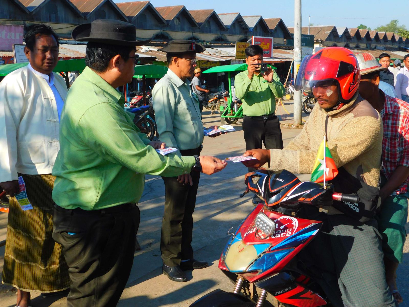 ထို့သို့ ဆောင်ရွက်ရာတွင်လည်း မှော်ဘီခရိုင်စီမံခန့်ခွဲရေးနှင့် အုပ်ချုပ်ရေးကော်မတီဥက္ကဋ္ဌ ဦးစိုးနိုင်နှင့် အဖွဲ့ဝင်များ၊ မြို့နယ်စီမံခန့်ခွဲရေးနှင့် အုပ်ချုပ်ရေးကော်မတီဥက္ကဋ္ဌ ဦးနိုင်နိုင်ဦးနှင့် မြို့နယ်စီမံခန့်ခွဲရေးနှင့် အုပ်ချုပ်ရေးကော်မတီအဖွဲ့ဝင်များ၊ မြို့နယ်ရွေးကောက်ပွဲကော်မရှင်အဖွဲ့ခွဲဥက္ကဋ္ဌနှင့် အဖွဲ့ဝင်များ၊ မြို့နယ်အဆင့်ဌာနဆိုင်ရာတာဝန်ရှိသူများက ပြည်သူများအား ရွေးကောက်ပွဲဆိုင်ရာများကို ကျယ်ကျယ်ပြန့်ပြန့် သိရှိစေရေးအတွက် ဒို့အတူတူမဲပေးကြမယ်၊ ရွေးကောက်ပွဲမှသည် ပိုမိုကောင်းမွန်သော အနာဂတ်ဆီသို့၊ ဒီမိုကရေစီကို ပြန်လည်ဖော်ဆောင်ဖို့အတွက် ရွေးကောက်ပွဲမှလွဲ၍ အခြားနည်းမရှိပါ၊ ပြည်သူများလိုလားသည့် ဒီမိုကရေစီနိုင်ငံတော်ကို ရွေးကောက်ပွဲဖြင့်သာ ဖော်ဆောင်နိုင်ပါသည်၊ ဒီမိုကရေစီခိုင်မြဲဖို့ မဲရုံသွားပြီး မဲပေးကြပါစို့နှင့် နိုင်ငံဖွံ့ဖြိုးတိုးတက်ဖို့ ဦးဆောင်နိုင်သူရွေးချယ်ကြပါစို့ စသည့်အကြောင်းအရာများ ပါဝင်သည့် အသိပညာပေး လက်ကမ်းစာစောင်များကို ဖြတ်သန်းသွားလာနေကြသည့် ပြည်သူများ လက်ဝယ်အရောက် ဖြန့်ဝေပေးခဲ့ကြောင်း သိရသည်။