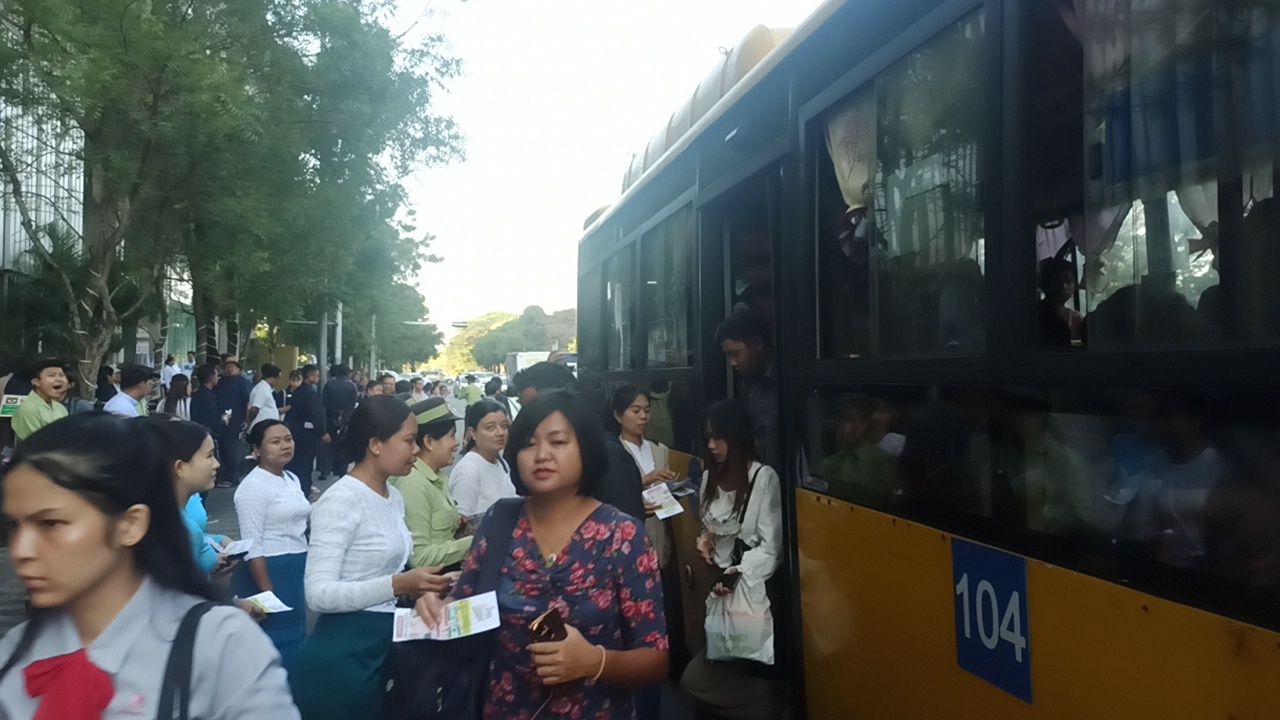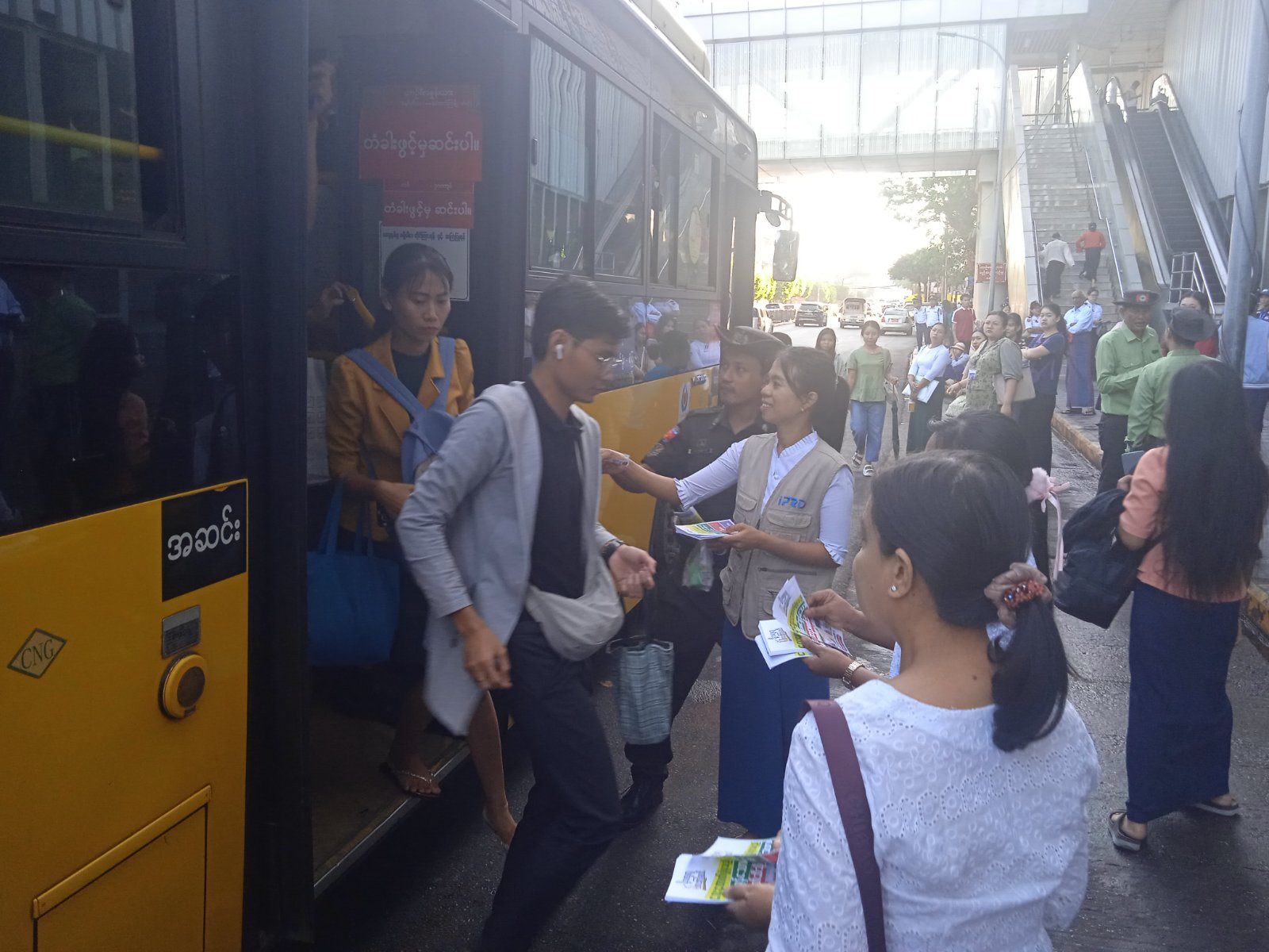 ရန်ကုန်တိုင်းဒေသကြီး၊ အမှတ် (၂) ရပ်ကွက်၊ ဗိုလ်ချုပ်အောင်ဆန်းလမ်း၊ JunctionCity ကားမှတ်တိုင်ရှေ့၌ ယမန်နေ့ နံနက် ၈ နာရီက ရွေးကောက်ပွဲဆိုင်ရာ အသိပညာပေးလှုံ့ဆော်မှုအဖြစ် “ဒို့အတူတူမဲပေးကြမယ်” လက်ကမ်းစာစောင်များ ဖြန့်ဝေလျက်ရှိကြောင်း သိရသည်။