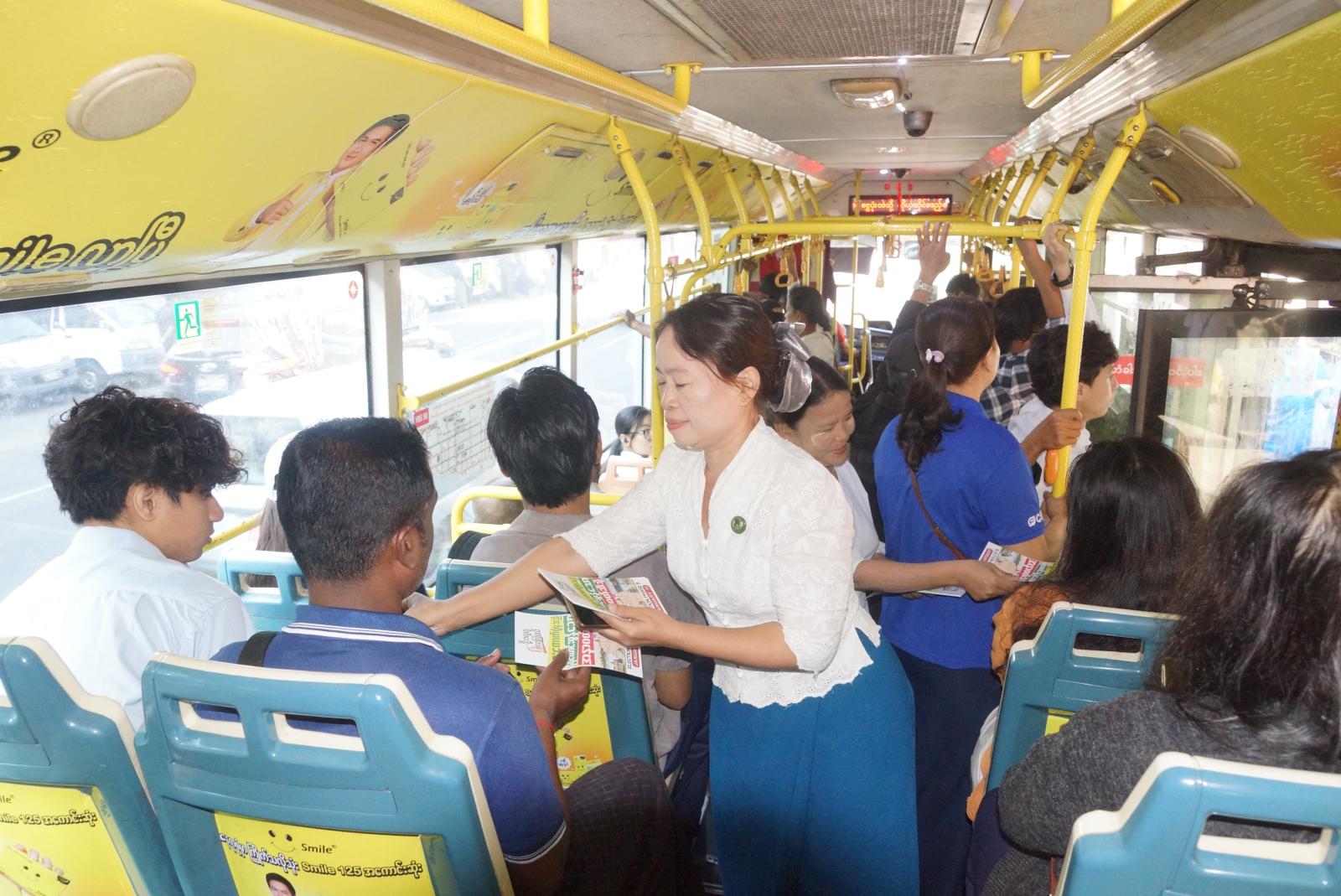 ထို့သို့ ဆောင်ရွက်ရာတွင် ကျောက်တံတားခရိုင်စီမံခန့်ခွဲရေးနှင့် အုပ်ချုပ်ရေးကော်မတီဥက္ကဋ္ဌ ဦးဥက္ကာ မြို့နယ်စီမံခန့်ခွဲရေးနှင့် အုပ်ချုပ်ရေးကော်မတီဥက္ကဋ္ဌနှင့် အဖွဲ့ဝင်များ၊ ရွေးကောက်ပွဲကော်မရှင်အဖွဲ့ခွဲမှ တာဝန်ရှိသူများ၊ မြို့နယ်အမျိုးသမီးရေးရာအဖွဲ့နှင့် မိခင်နှင့် ကလေးစောင့်ရှောက်ရေးအသင်းများနှင့် တာဝန်ရှိသူများက ဖြတ်သန်းသွားလာနေသည့် မော်တော်ယာဉ်များနှင့် YBS မော်တော်ယာဉ်များတွင် "ဒို့အတူမဲပေးကြမယ်" လက်ကမ်းစာစောင်များကို ပြည်သူများ လက်ဝယ်အရောက် ဖြန့်ဝေခြင်းများကို ဆောင်ရွက်ခဲ့ကြသည်။