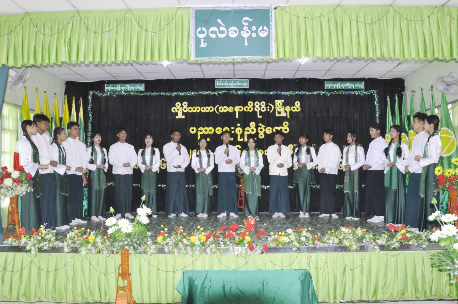 အခမ်းအနားကို Grade-12 ကျောင်းသား / ကျောင်းသူများက ''စုံညီပွဲတော်တို့နွှဲပျော်" သီချင်းဖြင့် သီဆိုဖွင့်လှစ်ပြီး လှိုင်သာယာ (အနောက်ပိုင်း) မြို့နယ် မြို့နယ်စီမံခန့်ခွဲရေးနှင့် အုပ်ချုပ်ရေးကော်မတီဥက္ကဋ္ဌ ဦးထွန်းထွန်းလင်းက အဖွင့်အမှာစကားပြောကြားသည်။