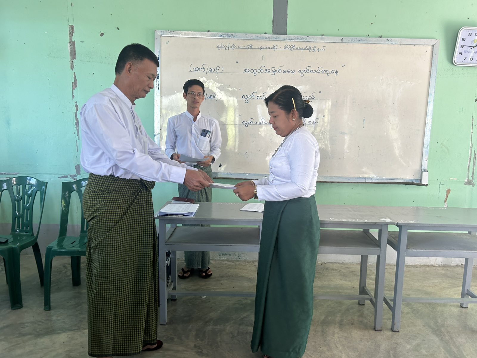 ဦးစွာ မြို့နယ်ရွေးကောက်ပွဲကော်မရှင်အဖွဲ့ခွဲဥက္ကဋ္ဌ ဦးမောင်မောင်သာက အမှာစကားပြောကြားပြီး၊ အတွင်းရေးမှူး မြို့နယ်ရွေးကောက်ပွဲကော်မရှင် အဖွဲ့ခွဲရုံး ဦးစီးအရာရှိ ဦးနိုင်လင်းကိုကိုက မဲရုံအဖွဲ့ဝင်များအား ခန့်အပ်လွှာပေးအပ်ခြင်းနှင့် စပ်လျဥ်း၍ ရှင်းလင်းပြောကြားသည်။ ထို့နောက် ၂၀၂၅ ခုနှစ် ပါတီစုံဒီမိုကရေစီအထွေထွေရွေးကောက်ပွဲ အပိုင်း (၃) ကျင်းပရာတွင် မြို့နယ်အတွင်းရှိ မဲရုံများတွင် တာဝန်ထမ်းဆောင်ကြမည့် မဲရုံမှူး၊ ဒုတိယမဲရုံမှူးနှင့် မဲရုံအဖွဲ့ဝင်များ၏ ခန့်အပ်လွှာများကို သက်ဆိုင်ရာမဲရုံအလိုက် မဲရုံမှူးများ လက်ဝယ်သို့ မြို့နယ်ရွေးကောက်ပွဲကော်မရှင်အဖွဲ့ခွဲ တာဝန်ရှိသူများက ပေးအပ်ခဲ့ကြောင်း သိရသည်။