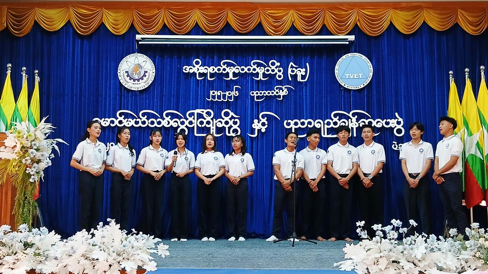 ပညာရေးဝန်ကြီးဌာန၊ အဆင့်မြင့်ပညာဦးစီးဌာန၊ အစိုးရစက်မှုလက်မှုသိပ္ပံကျောင်း(ပဲခူး)၌ ၂၀၂၅ - ၂၀၂၆ ပညာသင်နှစ်၊ မောင်မယ်သစ်လွင်ကြိုဆိုပွဲအား ယမန်နေ့နံနက် ၉ နာရီခွဲအချိန်က အဆိုပါကျောင်း CONVOCATION HALL တွင် ကျင်းပပြုလုပ်ခဲ့သည်။