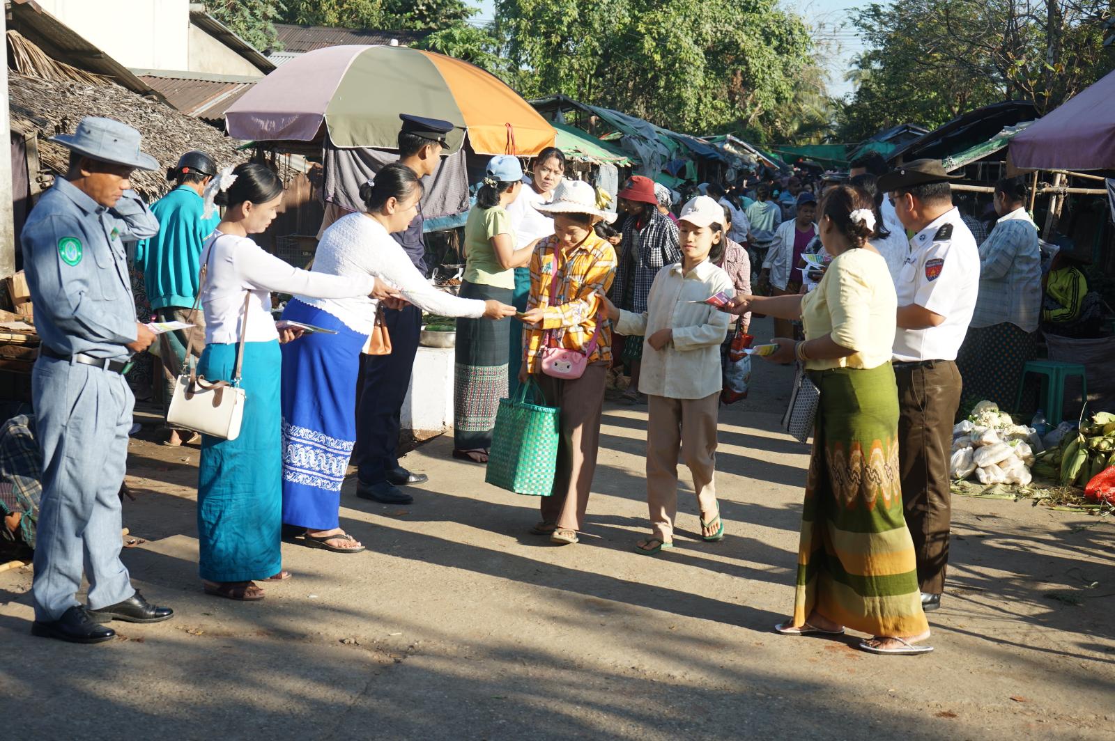 ဖြန့်ဝေရာတွင် အမှတ်(၁၈)လမ်းဈေးပတ်ဝန်းကျင်၊ မော်တော်ယာဉ်ဂိတ်နှင့် အနှေးယာဉ်ဂိတ်များ၊ အမှတ်(၁၈)လမ်းတစ်လျှောက်စသည့် လူစည်ကားရာ အရပ်များတွင် လှုံ့ဆော်လှုပ်ရှား ဖြန့်ဝေပေးခဲ့ကြပြီး ရွေးကောက်ပွဲတွင် အားလုံးပါဝင်မဲပေးနိုင်ရေး လှုံ့ဆော်ခဲ့ကြကြောင်း သိရသည်။