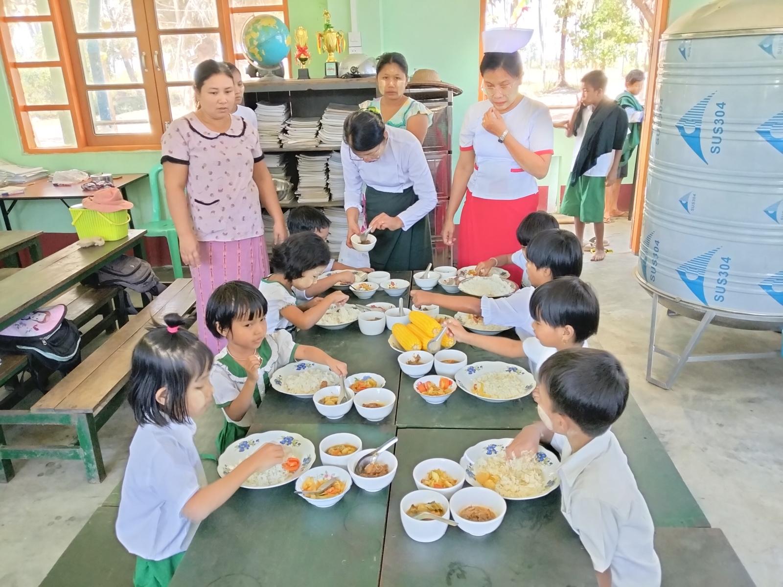 ထို့ကြောင့် KG -တန်းကျောင်းသား၊ ကျောင်းသူများအား အာဟာရ ကျွေးမွေးရာတွင် အစာအုပ်စု(၃)အုပ်စုပေါ် မူတည်၍ ရွေးချယ်သတ်မှတ်ပြီး ဘေးအန္တရာယ်ကင်းရှင်းစေရန် ချက်ပြုတ်ပြင်ဆင်ကာ ရွှေသောင်ယံမြို့ကျန်းမာရေးဌာနမှ တာဝန်ရှိသူများ၊ သက်ဆိုင်ရာကျောင်းများမှ ဆရာ၊ ဆရာမများ၊ ကျောင်းသားမိဘများမှ ဝိုင်းဝန်းစီစဉ်ဆောင်ရွက်၍ ကျွေးမွေးပြုစုပေးခဲ့ကြောင်းသိရသည်။