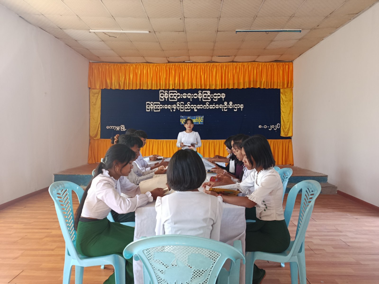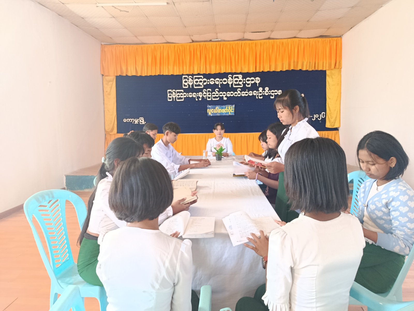 ထို့နောက် ကျောင်းသား/ကျောင်းသူလူငယ်များဖြင့် စာဖတ်ဝိုင်းပြုလုပ်ရာ Grade-10 ကျောင်းသား မောင်လင်းလင်းထက်က စာရေးဆရာချစ်နိုင်စိတ်ပညာရေးသားသည့် ခေါင်းဆောင်ကောင်းစာအုပ်ထဲမှ ခေါင်းဆောင်ကောင်းခေါင်းစဉ်ဖြင့်လည်းကောင်း၊ မချိုမီမီအေးက မြင်သူနဲ့မမြင်သူ ခေါင်းစဉ်ဖြင့်လည်းကောင်း၊ မယွန်းယွန်းက ကိုယ်ရည်ကိုယ်သွေးခေါင်းစဉ်များဖြင့် အသီးသီးဆွေးနွေးခဲ့ကြသည်။ ဆက်လက်၍ လူငယ်စာပေဝါသနာရှင် မောင်လင်းလင်းထက်က ဆွေးနွေးရာတွင် လူငယ်ဘဝမှစ၍ အကောင်းဘက်သို့ ဉီးတည်မှုများရှိပါက ထိုသူ၏ဘဝသည် အကောင်းချည်းဖြစ်ဖို့ ရာခိုင်နှုန်းအလွန်များကြောင်း၊ လူငယ်တို့တွင် ခွန်အားသစ်များ၊ တက်ကြွမှုများ၊ စွန့်စားဝံ့မှုများရှိရာ ထိုအရည်အချင်းများကို အပြုသဘောဆောင်သည့် လုပ်ငန်းများတွင်အသုံးပြုပါက များစွာထိရောက်မှုရှိမှာဖြစ်ကြောင်း” စသည့် အကြောင်းအရာများကို ဆွေးနွေးခဲ့ရာ ကျောင်းသား၊ ကျောင်းသူများက မိမိတို့၏ အတွေးအမြင်၊ အယူအဆ၊ ခံယူချက်စိတ်ထားများကို အချင်းချင်းအပြန်အလှန်ဆွေးနွေးခဲ့ကြသည်။