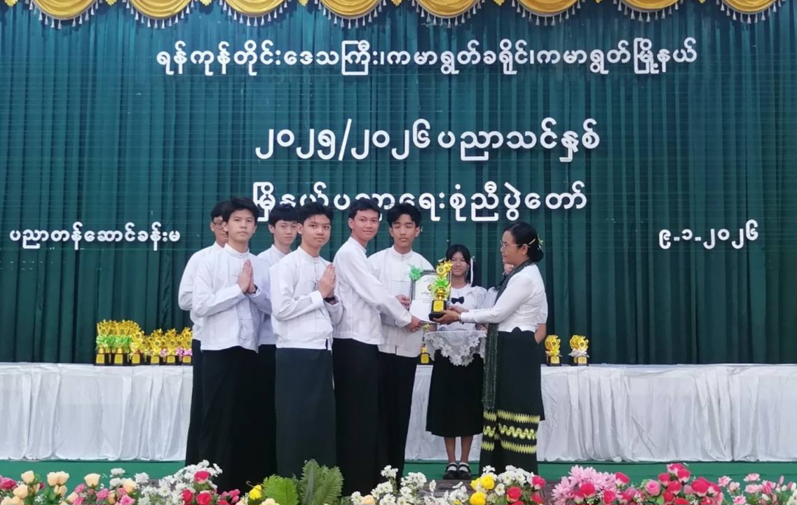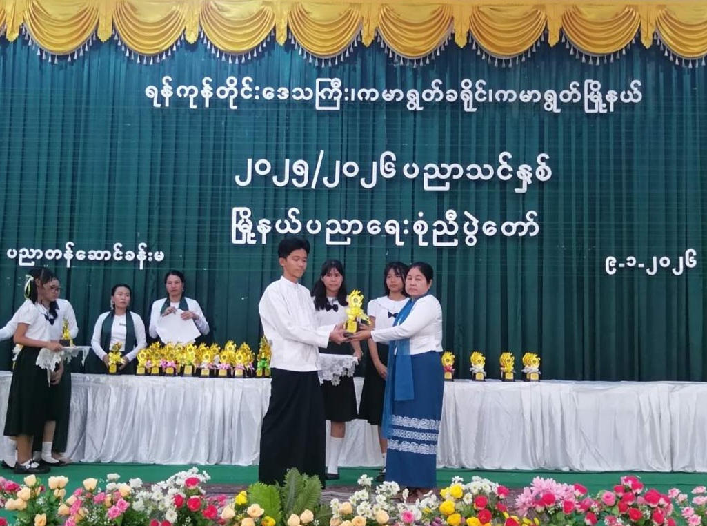 ၎င်းနောက် မြို့နယ်အတွင်းရှိ အခြေခံပညာကျောင်းများမှ ထူးချွန်ဆုများ ရရှိခဲ့ကြသည့် ဆရာ၊ ဆရာမများ၊ ကျောင်းသား၊ ကျောင်းသူများကို တာဝန်ရှိသူများက ဆုများအသီးသီးချီးမြှင့်ခဲ့ကြပြီးက မာရွတ်မြို့နယ်၊ အမှတ် (၂) အခြေခံပညာမူလတန်းကျောင်းမှ ကျောင်းသား၊ ကျောင်းသူများက “ကလက်စုံညီကန်တော့ပန်းဆင်မည်” သီချင်းဖြင့် သီဆိုကပြဖျော်ဖြေတင်ဆက်ခဲ့ကြသည်။