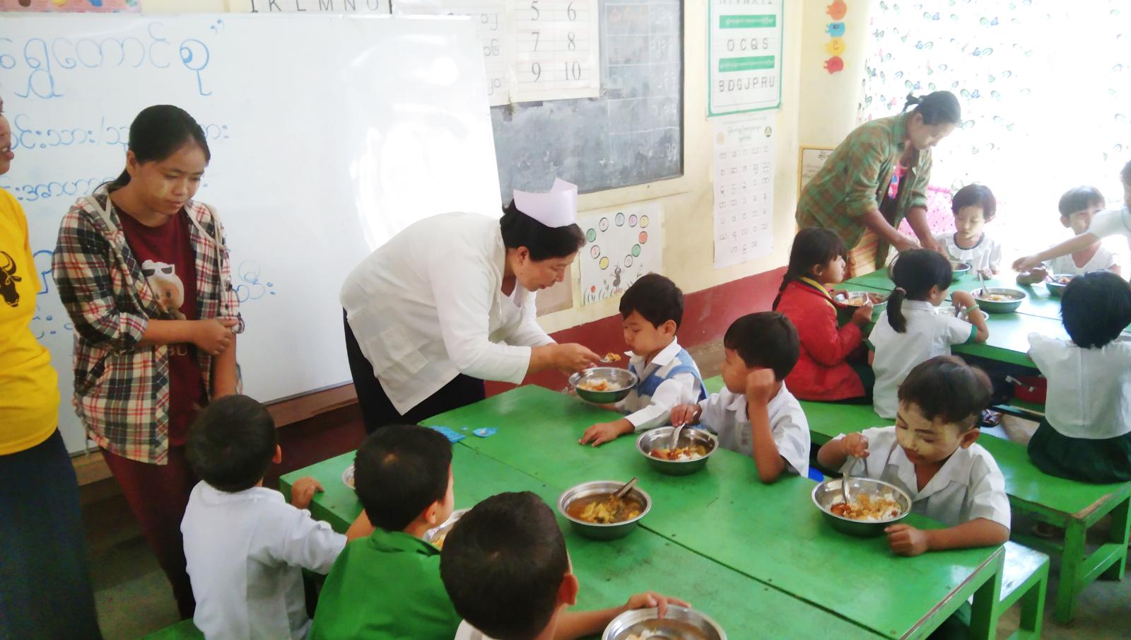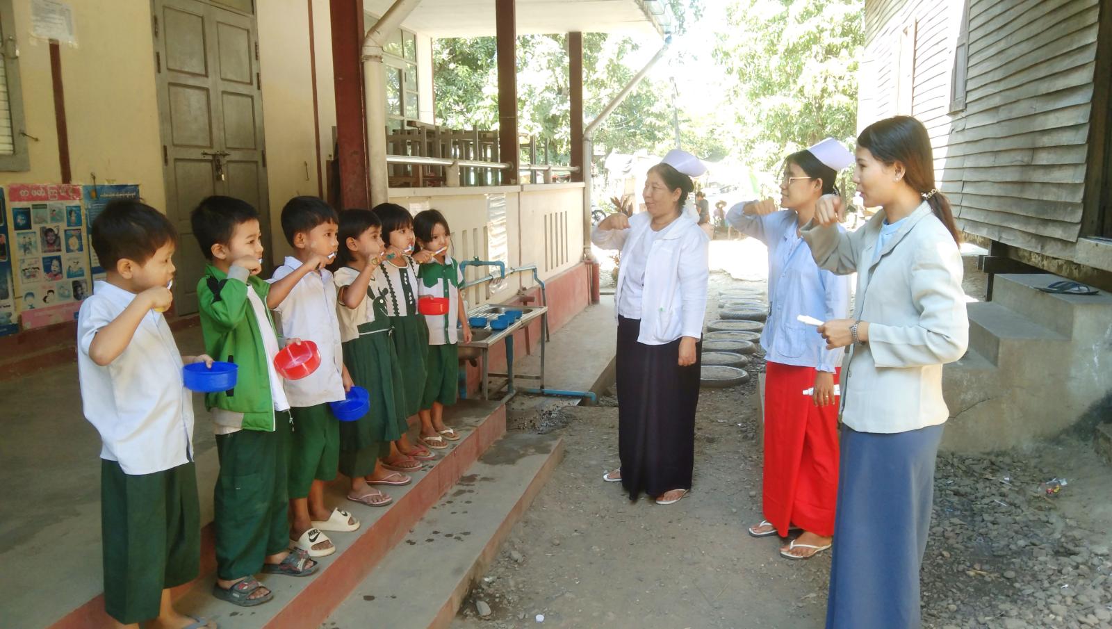 ရှေးဦးစွာ မြို့နယ်မိခင်နှင့်ကလေးစောင့်ရှောက်ရေးဌာန မြို့နယ်သူနာပြုအဆင့်(၁) ဦးအေးနိုင်၊ အမျိုးသမီးကျန်းမာရေးဆရာမနှင့် ဘက်စုံသားဖွား ဆရာမများက KG ကျောင်သား၊ ကျောင်းသူများအား တစ်ကိုယ်ရေသန့်ရှင်းရေး သန့်လေးသန့်ဖြင့် စနစ်တကျလက်ဆေးနည်း၊ သွားနှင့်ခံတွင်း ကျန်းမာစေရေး စနစ်တကျသွားတိုက်နည်းများကို သင်ကြားပြသပေးကြသည်။ ထို့နောက် KG ကျောင်သား၊ ကျောင်းသူများအား ကျန်းမာရေးနှင့်ညီညွတ်စေသည့် ထမင်း၊ ကြက်သားဟင်း၊ ချဉ်ဟင်းနှင့် ဖြည့်စွက်အစာ ငှက်ပျောသီးတို့ကို ဆရာ၊ ဆရာမများ၊ ကျောင်းသားမိဘများနှင့်ပူးပေါင်းကာ ကျွေးမွေးပေးခဲ့ကြကြောင်း သိရသည်။