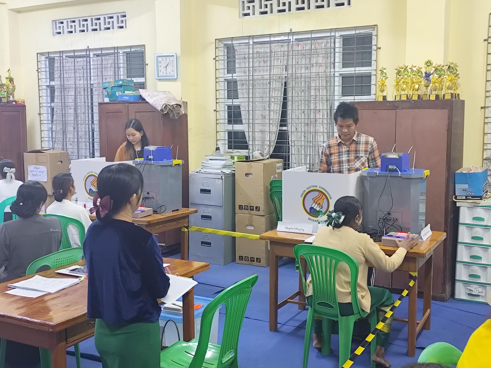 မဲရုံမဖွင့်လှစ်မီ မဲရုံတာဝန်ရှိသူများက လွှတ်တော်တစ်ရပ်စီအတွက် ထိန်းချုပ်စက်၊ ဆန္ဒပြုစက်နှင့် မဲပေးစက်ဖော်ပြသည့်စက်တို့ပါဝင်သော အီလက်ထရောနစ်မဲပေးစက်တို့ကို စနစ်တကျတပ်ဆင်ကာ နံနက်(၆)နာရီတိတိတွင် မဲရုံမှူးက မဲရုံဖွင့်လှစ်ပေးခဲ့သည်။ ထို့နောက် စောင့်ဆိုင်းနေသည့် မဲဆန္ဒရှင်ပြည်သူများမှ လွှတ်တော်အသီးသီးအတွက် မဲပေးစက်ဆန္ဒမဲပေးခန်းများ၌ လွတ်လပ်စွာ မိမိဆန္ဒပြုသည့်ကိုယ်စားလှယ်အားလွတ်လပ်စွာမဲထည့်ခဲ့ကြောင်းသိရသည်။