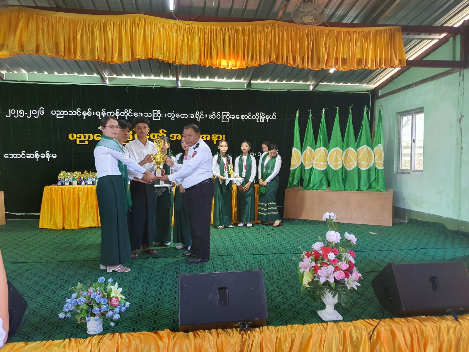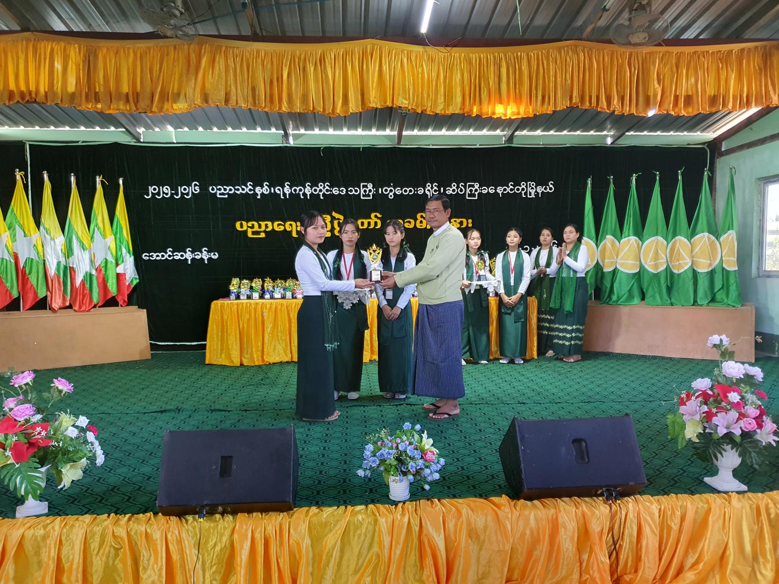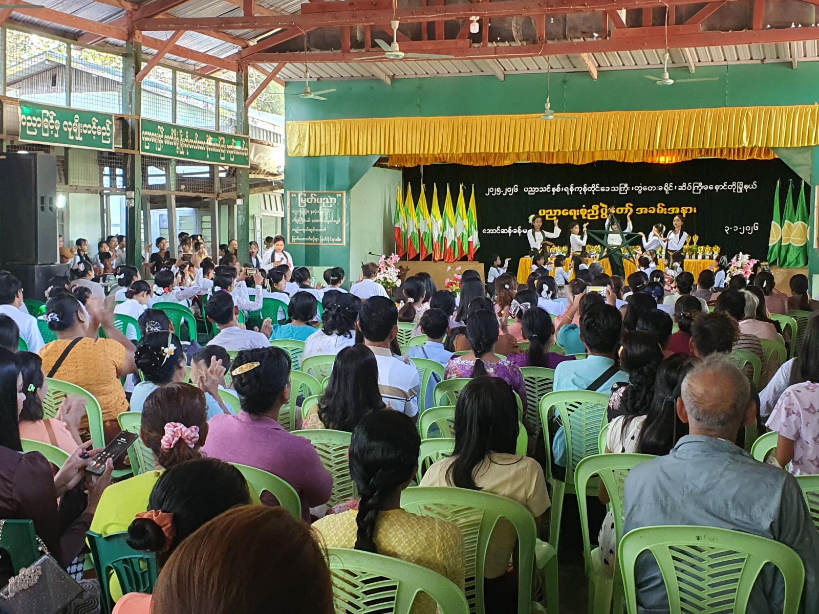 ထို့နောက် ၂၀၂၅ - ၂၀၂၆ ပညာသင်နှစ်တွင် သက်ဆိုင်ရာအတန်းအလိုက် မြို့နယ်အဆင့် ပညာရည်ချွန်ဆုနှင့် ဘက်စုံထူးချွန်ဆုရရှိကြသည့် ကျောင်းသား၊ ကျောင်းသူများနှင့် ထိုကဲ့သို့ထူးချွန်အောင် သင်ကြားပြသပေးခဲ့ကြသည့် ဆရာ၊ ဆရာမများအား မြို့နယ်စီမံခန့်ခွဲရေးနှင့် အုပ်ချုပ်ရေးကော်မတီဥက္ကဋ္ဌနှင့် အဖွဲ့ဝင်များ၊ ဌာနဆိုင်ရာတာဝန်ရှိသူများ၊ ကျောင်းအုပ်ဆရာ၊ ဆရာမများနှင့် ကျောင်းအကျိုးတော်ဆောင်များက ဂုဏ်ပြုဆုများ အသီးသီးပေးအပ် ချီးမြှင့်ခဲ့ကြပြီး၊ ကျောင်းသား၊ ကျောင်းသူလေးများက တေးသီချင်းများ၊ တေးသရုပ်ဖော်အကများဖြင့် ပျော်ရွှင်စွာ ကပြသီဆိုဖျော်ဖြေခဲ့ကြသည်။