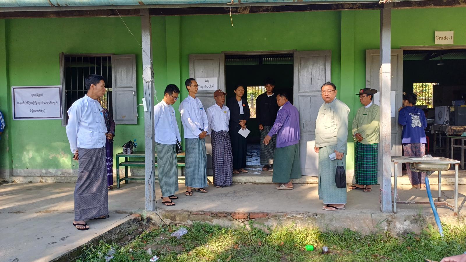ရှေးဦးစွာ ပြည်ထောင်စုရွေးကောက်ပွဲကော်မရှင် အဖွဲ့ဝင် ဧရာဝတီတိုင်းဒေသကြီး တာဝန်ခံဦးတင်ဆွေဝင်းသည် ခရိုင်ရွေးကောက်ပွဲ ကော်မရှင်အဖွဲ့ခွဲ၊ ဥက္ကဋ္ဌ ဦးသန့်ဇင်လတ်နှင့် အဖွဲ့ဝင်များ၊ မြို့နယ်ရွေးကောက်ပွဲ ကော်မရှင်အဖွဲ့ခွဲ အဖွဲ့ဝင်များ လိုက်ပါလျက် ဖျာပုံမြို့ မြို့ပေါ်ရပ်ကွက်နှင့် ကျေးရွာအုပ်စုများရှိ မဲရုံအသီးသီး၌ ပြည်သူများ အေးချမ်းပျော်ရွှင်စွာ ဆန္ဒမဲလာရောက် ပေးနေမှုအား ကြည့်ရှုအားပေးပြီး ပြည်သူများအား ရင်းရင်းနှီးနှီးတွေ့ ဆုံနုတ်ဆက်သည်။