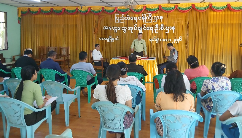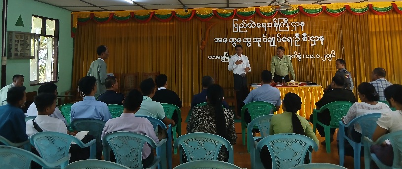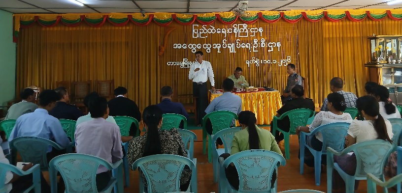 အစည်းအဝေးတွင် တာမွေမြို့နယ် စီမံခန့်ခွဲရေးနှင့် အုပ်ချုပ်ရေးကော်မတီဥက္ကဋ္ဌ မြို့နယ်အုပ်ချုပ်ရေးမှူး ဦးမြင့်ဝင်းက အဖွင့်အမှာစကားပြောကြားခဲ့ပြီး မြို့နယ်ရွေးကောက်ပွဲကော်မရှင်အဖွဲ့ခွဲဥက္ကဋ္ဌ ဦးမျိုးအောင်က တာမွေမြို့နယ်၌ ကြိုတင်ဆန္ဒမဲပေးသည့်နေ့များနှင့် ရွေးကောက်ပွဲကျင်းပသည့်နေ့တွင် ပြည်သူများ အဆင်ပြေချောမွေ့စွာ ဆန္ဒမဲလာရောက်ပေးနိုင်စေရေးအတွက် မဲရုံအခင်းအကျင်းအား စနစ်တကျပြင်ဆင်ဆောင်ရွက်ထားရှိမှုများနှင့် ပတ်သက်၍လည်းကောင်း၊ မြို့နယ်ရွေးကောက်ပွဲအရာရှိ ဦးသော်ကအောင်မှ မြို့နယ်အတွင်းရှိ ဆန္ဒမဲပေးပိုင်ခွင့်ရှိသူ ပြည်သူများအနေဖြင့် ဆန္ဒမဲပေးပိုင်ခွင့်မဆုံးရှုံးစေရေးအတွက် ဆောင်ရွက်ပေးသွားမည့် အစီအစဉ်များနှင့် ပတ်သက်၍လည်းကောင်း အသီးသီးရှင်းလင်းဆွေးနွေးတင်ပြခဲ့ကြသည်။ ထို့နောက် တက်ရောက်လာကြသူများမှ သိရှိလိုသည်များကို မေးမြန်းခဲ့ကြရာ သက်ဆိုင်ရာတာဝန်ရှိသူများက ပြန်လည်ရှင်းလင်းဖြေကြားပေးခဲ့သည်။