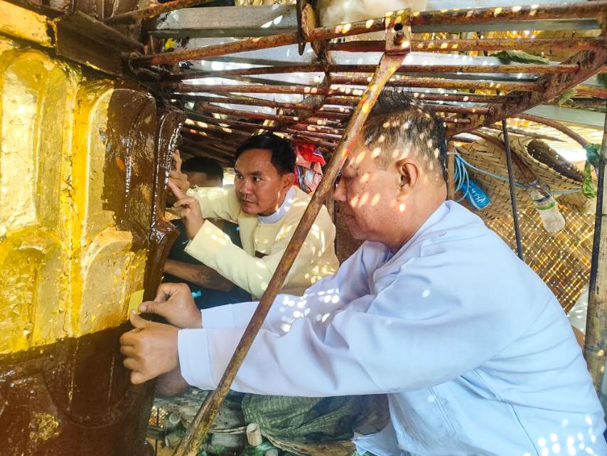 “သီဟိုဠ်ရှင်မြတ်စွာဘုရားစေတီတော်ကြီးအား ရွှေသင်္ကန်းကပ်လှူနိုင်ရေးအတွက် ငြမ်းလုပ်ငန်း၊ ပြဒါးခံသစ်ဆေးသုတ်လုပ်ငန်းနှင့် ရွှေဆိုင်းချခြင်း၊ ရွှေသင်္ကန်းကပ်လှူခြင်းလုပ်ငန်းစသည်ဖြင့် အပိုင်း(၃)ပိုင်းခွဲ၍ ၂၀၂၅ခုနှစ်၊ အောက်တိုဘာလ ၁၈ ရက်မှ စတင်ဆောင်ရွက်ခဲ့ကြောင်း၊ ရွှေသင်္ကန်းကပ်လှူပူဇော်ခြင်းလုပ်ငန်းများ အရည်အသွေးပြည့်မီစွာ ဆောင်ရွက်ပြီးစီးရေး လျာထားဆောင်ရွက်လျက်ရှိကြောင်း၊ ၂၀၂၆ခုနှစ်၊ ဇန်နဝါရီလ ၄ ရက်နေ့တွင် ပခုက္ကူမြို့ရှိ နိုင်ငံတော်ဩဝါဒစရိယဆရာတော်၊ နိုင်ငံတော်သံဃမဟာနာယကအဖွဲ့ဝင်ဆရာတော်၊ တိုင်းဒေသကြီး သံဃနာယကအဖွဲ့ဝင် ဆရာတော်ကြီးများ၊ မြို့နယ်သံဃနာယကအဖွဲ့ဝင် ဆရာတော်ကြီးများ ဦးဆောင်မှုဖြင့် ခရိုင်စီမံခန့်ခွဲရေးနှင့် အုပ်ချုပ်ရေးကော်မတီဥက္ကဋ္ဌ ဦးမြင့်နိုင်နှင့် အဖွဲ့ဝင်များ၊ မြို့နယ်စီမံခန့်ခွဲရေးနှင့် အုပ်ချုပ်ရေးကော်မတီဥက္ကဋ္ဌ ဦးအောင်စိုးမိုးနှင့် အဖွဲ့ဝင်များ၊ ခရိုင်သာသနာရေးဦးစီးဌာနမှ လက်ထောက်ညွှန်ကြားရေးမှူး ဦးကျင်ရွှေနှင့် ဝန်ထမ်းများ၊ သီဟိုဠ်ရှင် မြတ်စွာဘုရားကြီး ဘဏ္ဍာတော်ထိန်းဂေါပကအဖွဲ့ဥက္ကဋ္ဌ ဦးလှဖုန်းနှင့် ဂေါပကအဖွဲ့ဝင်များ၊ အလှူရှင်ပြည်သူများစုပေါင်း၍ ရွှေသင်္ကန်းကပ်လှူပူဇော်ခြင်းလုပ်ငန်းများ ဆောင်ရွက်ရာတွင် အန္တရာယ်ကင်းရှင်းစေရေး ဝေနေယျသတ္တဝါအပေါင်းတို့အား မေတ္တာပို့သခြင်း၊ အန္တရာယ်ကင်းပရိတ်တရားတော်များရွတ်ဖတ်ပူဇော်ခြင်း၊ စုပေါင်းအမျှအတမ်းပေးဝေခြင်းများ ဆောင်ရွက်ပြီး နတ်ပန်းရထားဖြင့် လုံးတော်ပြည့်ရွှေသင်္ကန်း စတင်ကပ်လှူပူဇော်ခဲ့ကြကြောင်း၊ ယခုအခါ (၆၅)ကျပ်သားရှိ (၉)လက်မပတ်လည် ရွှေစင်ရွှေပြားအချပ်ပေါင်း(၅၀)ခန့် ကပ်လှူပူဇော်ပြီးစီးကြောင်း၊ ရွှေစင်ရွှေပြား ၁၂ ချပ်ခန့် ကပ်လှူပူဇော်ရန် ကျန်ရှိပြီး ရွှေသင်္ကန်းကပ်လှူပူဇော်မှုလုပ်ငန်း ၅၀ ရာခိုင်နှုန်းပြီးစီးနေပြီဖြစ်ကြောင်း၊ နတ်ပန်းရထားဖြင့် စေတနာရှင်ပြည်သူများကိုယ်တိုင် လှူဒါန်းပူဇော်နိုင်ရေး ဘုရားကြီး၌ နေ့စဉ်နံနက် ၈ နာရီမှ မွန်းတည့် ၁၂ နာရီအထိ စီစဉ်ဆောင်ရွက်ပေးလျက်ရှိပြီး လက်ရှိအချိန်ထိ စေတနာရှင်ပြည်သူများ၏ လှူဒါန်းမှုစုစုပေါင်းငွေကျပ်သိန်း ၁၂၀၀ ကျော် လက်ခံရရှိထားပြီးဖြစ်ကြောင်း၊ အရံစေတီ ၃၆ ဆူမှ ၃၂ ဆူအတွက် အလှူခံရရှိထားပြီး အရံစေတီ ၄ ဆူအတွက် ရပ်နီးရပ်ဝေးမှစေတနာရှင် ပြည်သူများအနေဖြင့် ရွှေသင်္ကန်းကပ်လှူပူဇော်မှုတွင် အလွယ်တကူကုသိုလ်ပြု လှူဒါန်းပါဝင်နိုင်ရေး THIHO SHIN PAGODA (၀၉-၇၇၇၈၅၃၅၃၆) အမည်ဖြင့် ဖွင့်လှစ်ထားသော AYA PAY Account QR Code ကို သီဟိုဠ်ရှင်ဂေါပကအဖွဲ့ Facebook Page မှတစ်ဆင့် အသိပေးနှိုးဆော်ထားကြောင်း” ဘုရားကြီး ဘဏ္ဍာတော်ထိန်း