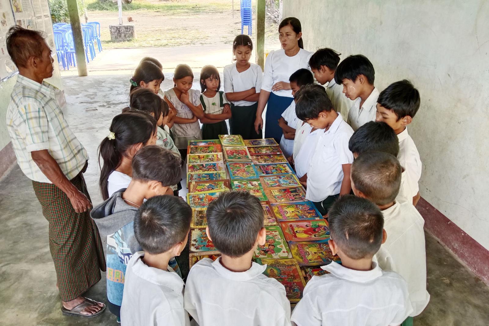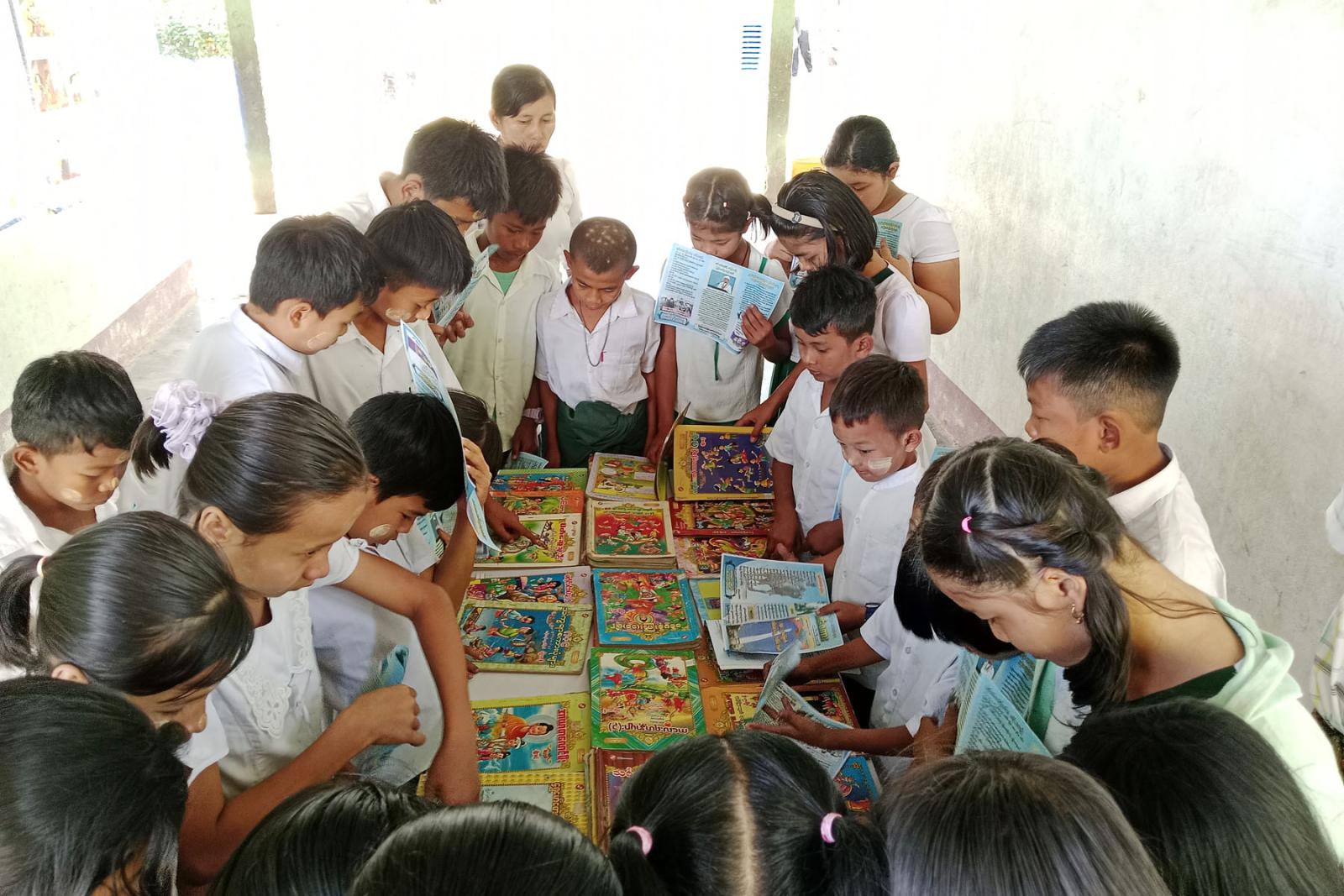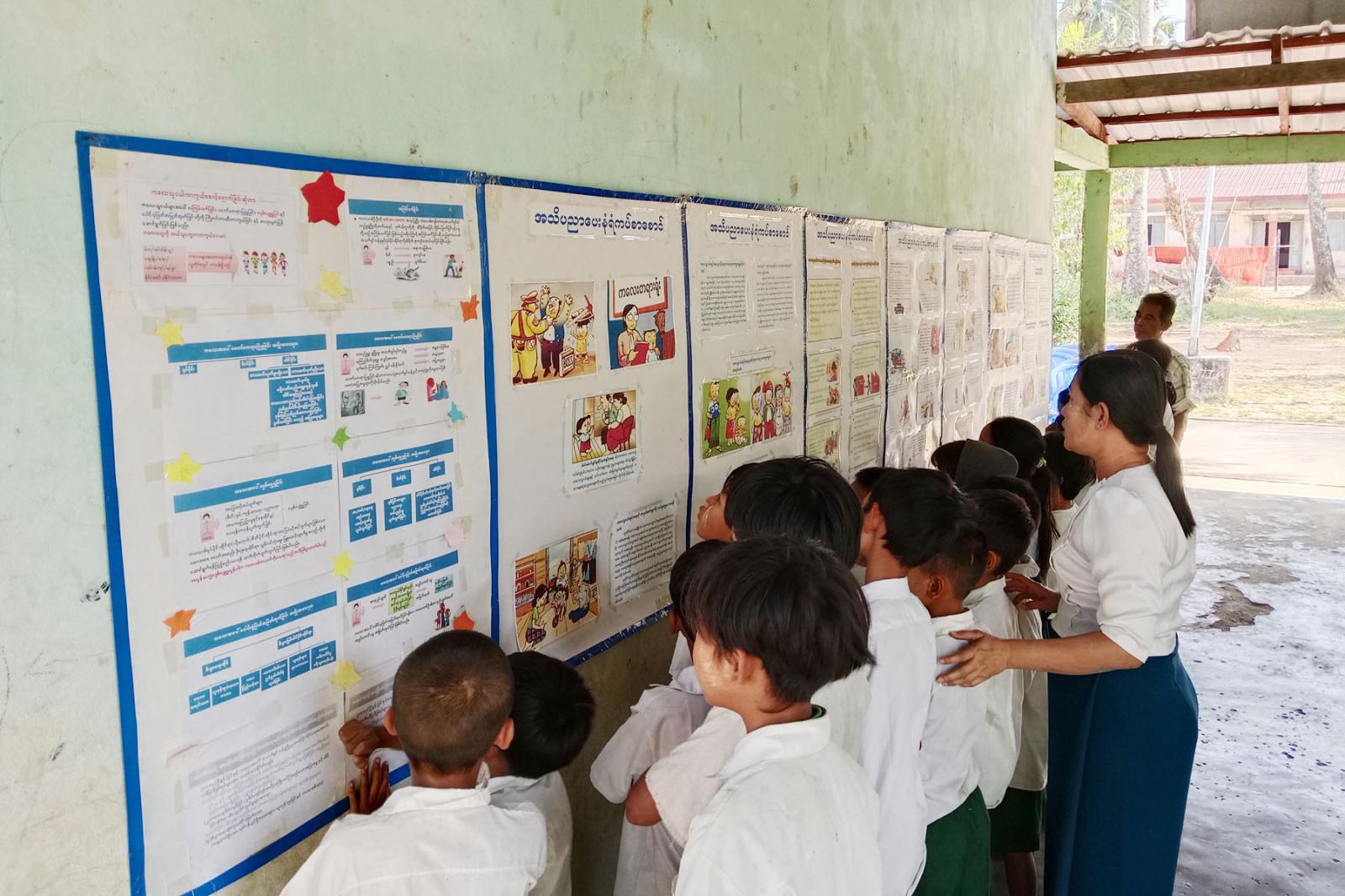 ထို့နောက် ပြန်ကြားရေးနှင့်ပြည်သူ့ဆက်ဆံရေးဦးစီးဌာနမှ စာဖတ်ရှိန်မြှင့်တင်ရေးအသိပညာပေး စာအုပ်စာစောင်များ၊ ကလေးအလုပ် သမားလျော့နည်းပပျောက်ရေး အသိပညာပေး နံရံကပ်စာစောင်များ ခင်းကျင်းပြသထားရာ ကျောင်းသား၊ ကျောင်းသူများ စိတ်ပါဝင်စားစွာ ကြည့်ရှုလေ့လာ ဖတ်ရှုခဲ့ကြကြောင်း သိရသည်။