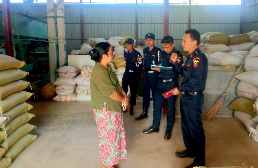ထို့နောက် မြို့နယ်မီးသတ်ဦးစီးမှူးနှင့် မီးသတ်တပ်ဖွဲ့ဝင်များက ဆန်စက်လုပ်ငန်းခွင်ရှိ လုပ်ငန်းရှင်နှင့် အလုပ်သမားများကို မီးဘေးအန္တရာယ် ရင်ဆိုင်ကြုံတွေ့လာပါက စိုးရိမ်ကြောက်ရွံ့မှုကင်းရှင်းစွာ မီးကို စနစ်တကျ ငြှိမ်းသတ်ဆောင်ရွက်တတ်စေရေးအတွက် မီးသတ်ဆေးဘူး အသုံးပြု၍ မီးငြှိမ်းသတ်ခြင်းများ၊ ရေစိုဝတ်ဖြင့် မီးငြှိမ်းသတ်ခြင်း၊ ဖုံးအုပ်နည်းဖြင့် မီးငြှိမ်းသတ်ခြင်းများကို လက်တွေ့လေ့ကျင့်သရုပ်ပြသဆောင်ရွက်ပေးခဲ့ကြောင်း သိရသည်။