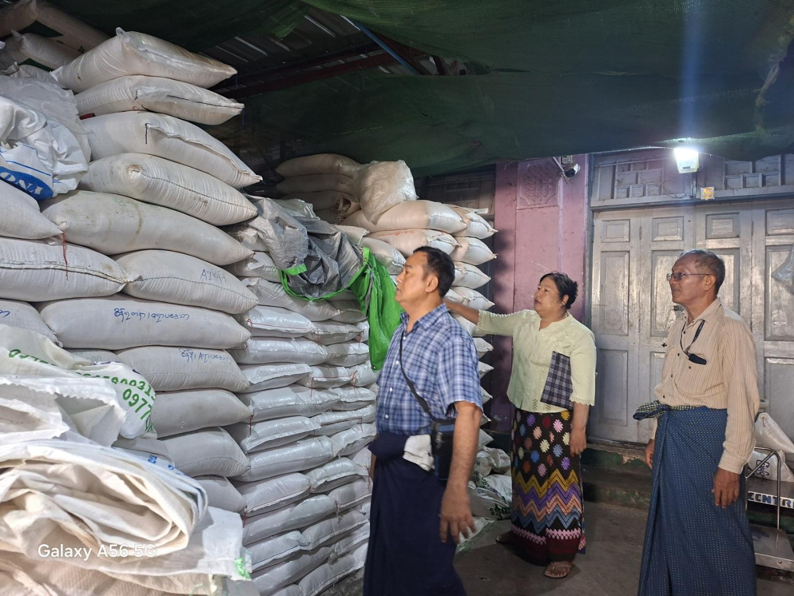 အဆိုပါ ကွင်းဆင်းဆောင်ရွက်ရာတွင် မြို့ပေါ်ရှိ ဆန်သိုလှောင်ရုံ ဆန်စက်များ၏ ကြိတ်ခွဲထုတ်လုပ်မှု၊ ဈေးနှုန်းဈေးကွက်နှင့် ဆန်စီးဝင်/စီးထွက်စာရင်းများ၊ MyRo တွင် မှတ်ပုံတင်ထားသည့် ဆန်စပါးသိုလှောင်ရုံများ၏ ကုန်ရ/ကုန်ထုတ် လက်ကျန်စာရင်းများ ရေးသွင်းထားခြင်း ရှိ/မရှိ နှင့် Update စာရင်း ရေးသွင်းနိုင်ရေးမှာကြားခြင်း၊ ဆန်ဆိုင်များအနေဖြင့် အိတ် (၅၀၀) အထက် ဆန်လက်ကျန်များ သိုလှောင်ထားသော်လည်း မှတ်ပုံထားခြင်း မရှိသည်ကို စိစစ်တွေ့ရှိပါက ဥပဒေအရ အရေးယူခြင်း ခံရနိုင်ကြောင်းဆွေးနွေးပြောကြားခဲ့ပြီး ဆန်ဆိုင်များအား စစ်ဆေးရာတွင် ဆန်များအား အခြားအမျိုးမတူဆန်များနှင့် ရောနှောရောင်းချခြင်း မပြုရေး၊ ဆီဆိုင်များအနေဖြင့် ဆီများကို အခြားအမျိုးမတူဆီများနှင့် ရောနှော၍ ရောင်းချခြင်း မရှိစေရေးနှင့် ဈေးနှုန်းမြှင့်တင်ရောင်းချမှု မရှိစေရေး၊ ကုန်စည်များပေါ်တွင် ကုန်စည်အမျိုးအစားကိုလိုက်၍ ကုန်အညွှန်းအမှတ်အသားများ ပြည့်စုံမှန်ကန်စွာဖော်ပြခြင်း ရှိ/မရှိ တို့ကို စစ်ဆေးခဲ့ပြီး၊ သတ်မှတ်အရည်အသွေးပြည့်မီသော ကုန်စည်များကိုသာရောင်းချရေး၊ စီးပွားရေးလုပ်ငန်းရှင်များအနေဖြင့် ထုတ်ပြန်ထားသော ညွှန်ကြားချက်များအတိုင်း လိုက်နာဆောင်ရွက်ရေး၊ အသိပညာပေး ဆွေးနွေးခဲ့ကြောင်း သိရသည်။
