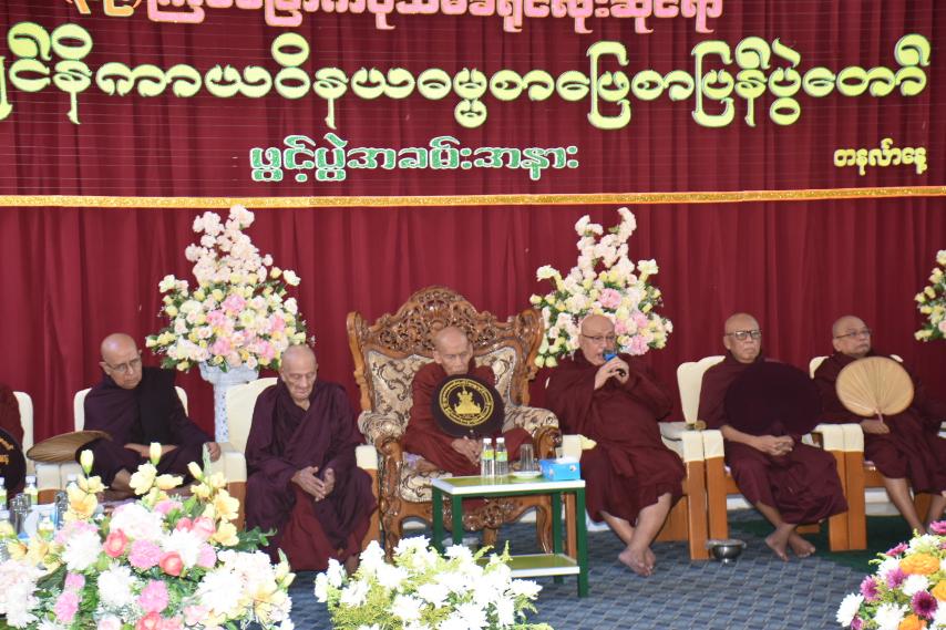 ဆက်လက်၍ ဘဒ္ဒန္တဉာဏိန္ဒ(အဂ္ဂမဟာဂန္တဝါစကပဏ္ဏိတ၊ ဓမ္မာစရိယ+ပါဠိပါရဂူ) တိုက်ကြီးကျောင်းပရိယတ္တိစာသင်တိုက် ဦးစီးပဓာနနာယက ဆရာတော်ထံမှ တိုင်းဒေသကြီးဝန်ကြီးချုပ်နှင့် ဧည့်ပရိသတ်များက အနုမောဒနာတရားများနာကြားကာ လှူဒါန်းမှုအစုစုတို့အတွက် ရေစက်သွန်းချအမျှပေးဝေခဲ့ပြီး ကြွရောက်တော်မူလာကြကုန်သော ဆရာတော်သံဃာတော်အရှင်မြတ်များနှင့် ဧည်ပရိသတ်အပေါင်းတို့က “ဝိနယောနာမ ဗုဒ္ဓသာသနဿ အာယု” ဟူသော ဗုဒ္ဓပါဝစန စကားတော်ကို (၃) ကြိမ်ရွတ်ဆိုတော်မူကြပြီး ဖွင့်ပွဲအခမ်းအနားကို အောင်မြင်စွာရုပ်သိမ်းခဲ့သည်။ ယင်းနောက် (၃၉)ကြိမ်မြောက်ပုသိမ်ခရိုင်လုံးဆိုင်ရာ ရွှေကျင်နိကာယဝိနယဓမ္မစာဖြေစာပြန်ပွဲတော်သို့ ကြွရောက်တော်မူလာကြသည့် ဆရာတော် သံဃာတော်အရှင်သူမြတ်များအား တိုင်းဒေသကြီးဝန်ကြီးချုပ်နှင့် ဇနီး၊ အစိုးရအဖွဲ့ဝင် ဝန်ကြီးများနှင့် ဇနီးများက နေ့ဆွမ်းများ ဆပ်ကပ်လှူဒါန်းခဲ့သည်။