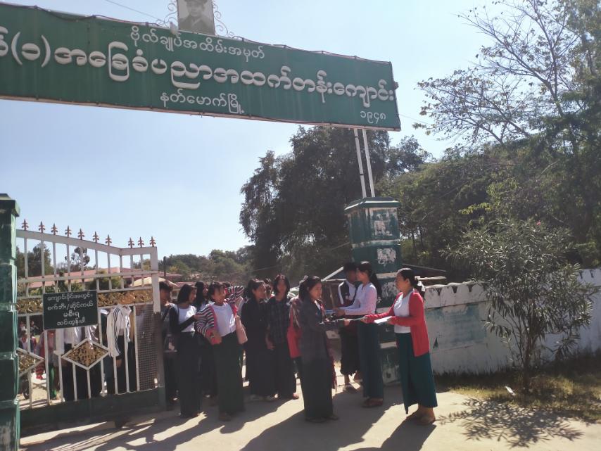 မကွေးတိုင်းဒေသကြီး၊ နတ်မောက်မြို့နယ်တွင် ကလေးအလုပ်သမားပပျောက်ရေး အသိပညာပေး လက်ကမ်းစာစောင်များကို ယမန်နေ့ နေ့လယ်(၁၂)နာရီအချိန်က အမှတ်(၁)အခြေခံပညာအထက်တန်းကျောင်းတွင် ကျောင်းသား/သူများအား ဖြန့်ဝေပေးခဲ့သည်။