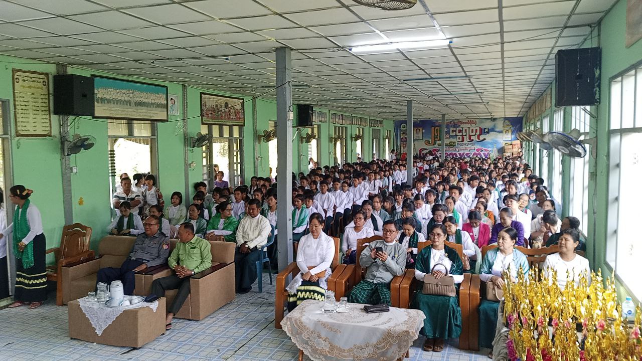 အခမ်းအနားသို့ မြို့နယ်စီမံခန့်ခွဲရေးနှင့် အုပ်ချုပ်ရေးကော်မတီဥက္ကဋ္ဌ မြို့နယ်အုပ်ချုပ်ရေးမှူး ဦးစန်းလွင်၊ မြို့နယ်ရဲတပ်ဖွဲ့မှူး ရဲမှူးမိုးသီဟကျော်နှင့် ဌာနဆိုင်ရာတာဝန်ရှိသူများ၊ ခရိုင်နှင့် မြို့နယ်ပညာရေးမှူးရုံးတာဝန်ရှိသူများ၊ ကျောင်းအုပ်ဆရာ၊ဆရာမကြီးများ၊ ဆရာ၊ ဆရာမများ၊ ကျောင်းသား၊ ကျောင်းသူများ၊ မိဘများနှင့် ဖိတ်ကြားထားသော ဧည့်သည်တော်များ တက်ရောက်ကြသည်။