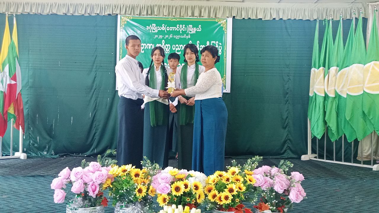 ထို့နောက် နိုင်ငံတော်ဗဟိုအဆင့်၊ တိုင်းအဆင့်၊ ခရိုင်အဆင့်၊မြို့နယ်အဆင့် ဆုရရှိကြသော ကျောင်းသား၊ ကျောင်းသူများအား မြို့နယ်စီမံခန့်ခွဲရေးနှင့် အုပ်ချုပ်ရေးကော်မတီဥက္ကဋ္ဌ မြို့နယ်အုပ်ချုပ်ရေးမှူး ဦးစန်းလွင်၊ မြို့နယ်ရဲတပ်ဖွဲ့မှူး ရဲမှူးမိုးသီဟကျော်နှင့် ဌာနဆိုင်ရာတာဝန်ရှိသူများ၊ ခရိုင်နှင့် မြို့နယ်ပညာရေးမှူးရုံးတာဝန်ရှိသူများ၊ ကျောင်းအုပ်ဆရာ၊ ဆရာမကြီးများက ဆုများချီးမြှင့်ပေးအပ်ကြသည်။
