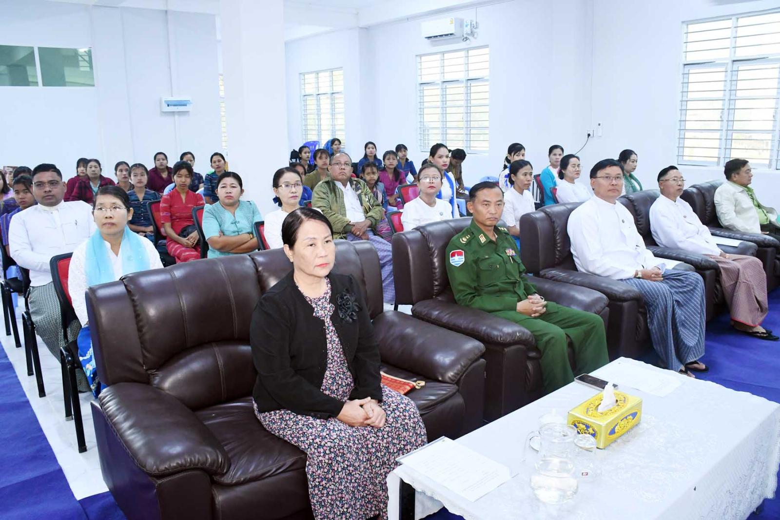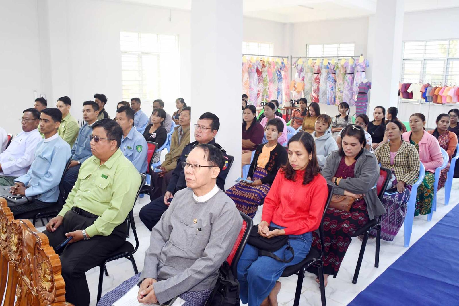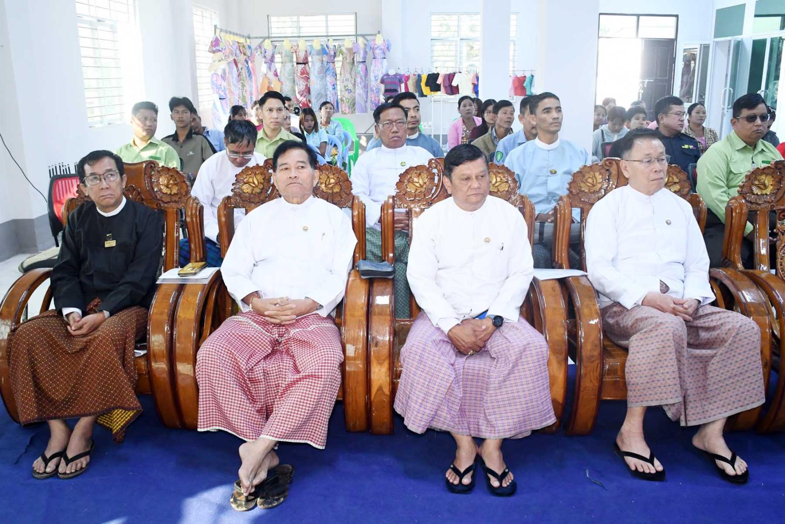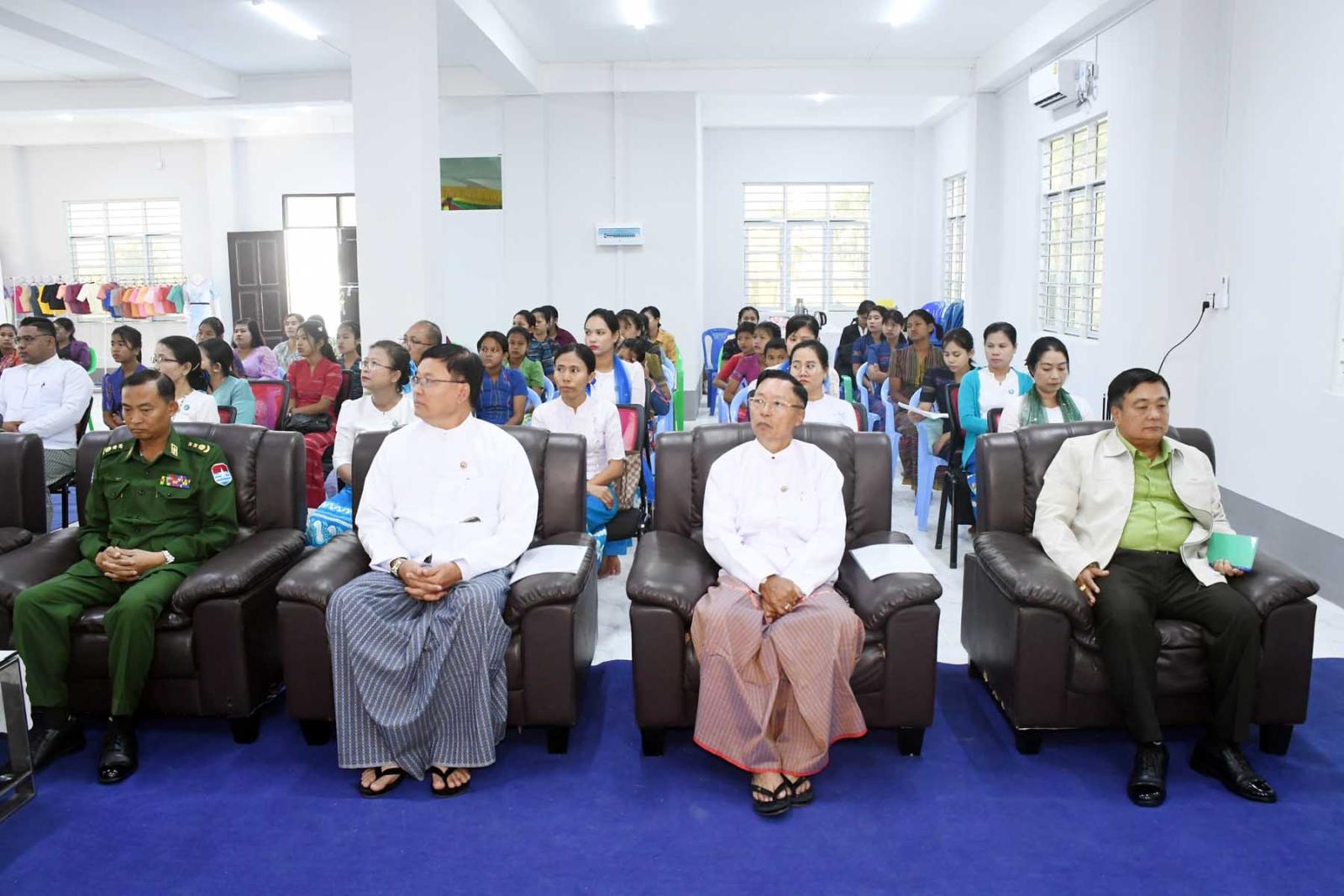 အခမ်းအနားတွင် တိုင်းဒေသကြီးဝန်ကြီးချုပ် ဦးမြတ်ကိုက တိုင်းဒေသကြီးအတွင်း အကြောင်းအမျိုးမျိုးကြောင့် ပညာရေးဆုံးခန်းတိုင်အောင် မသင်ကြားခဲ့ရသော ကျောင်းပြင်ပရောက်ကလေးများ၊ စာမသင်ခဲ့ရသူများ၊ အရွယ် လွန်သူများ၊ အသက်အရွယ်ဖြင့်အတန်းနှင့် မညီမျှသော ကလေးများကို တိုင်းဒေသကြီးအစိုးရအဖွဲ့က ကျောင်းပြင်ပပညာရေးအစီအစဉ်ဖြင့် သင်ကြားဆောင်ရွက်ပေးလျက်ရှိကြောင်း၊ ကျောင်းပြင်ပပညာရေးကျောင်းသား/ကျောင်းသူများ ရသင့်ရထိုက်သောအခွင့်အရေးများ ရရှိအောင် ဆောင်ရွက်ပေးလျက်ရှိကြောင်း၊ ကျောင်းသား/ ကျောင်းသူများအား ကျောင်းစာအပြင် စိတ်ဓာတ်ခွန်အားများရရှိအောင် တိုင်းရင်းသားရေးရာ စင်တာရုံးတွင် အဆင့်မြင့်စက်ချုပ်သင်တန်းအားဖွင့်လှစ်ပေးခြင်းဖြစ်ကြောင်း၊ ကျောင်းနေပြင်ပကျောင်းသား/ ကျောင်းသူများအတွက် သင်တန်းများ ဆက်လက်ဖွင့်လှစ်သင်ကြားပို့ချပေးသွားမည်ဖြစ်ကြောင်း၊ ကျောင်းသား/ ကျောင်းသူများအတွက် လိုအပ်သည့် လူ့စွမ်းအားအရင်းအမြစ်များဖြစ်သော အလတ်စားနှင့်အသေးစားစက်မှုလက်မှုလုပ်ငန်းသင်တန်းများကို ဖွင့်လှစ်ပေးသွားမည်ဖြစ်ကြောင်း၊ ယခုအဆင့်မြင့်စက်ချုပ်သင်တန်းကို ဖွင့်လှစ်သင်ကြားပေးနိုင်သည့်အတွက် ကျောင်းသား/ ကျောင်းသူများအနေဖြင့် အတိုင်းအတာတစ်ခုအထိတတ်မြောက်သွားသော ကြောင့် တိုင်းဒေသကြီးအစိုးရအဖွဲ့အနေဖြင့် ဝမ်းမြောက်ကြောင်း၊ ထို့အပြင် ကျောင်းနေပြင်ပကျောင်းသား/ကျောင်းသူများအတွက် လူမှုစီးပွားဘဝများဖွံ့ဖြိုးတိုးတက်စေရန် ယဉ်ကျေးမှုသင်တန်းများ၊ အသက်မွေးကျောင်းသင်တန်းများကို ဆက်လက်ဖွင့်လှစ် သင်ကြားပေးသွားမှာဖြစ်ကြောင်း ပြောကြားသည်။