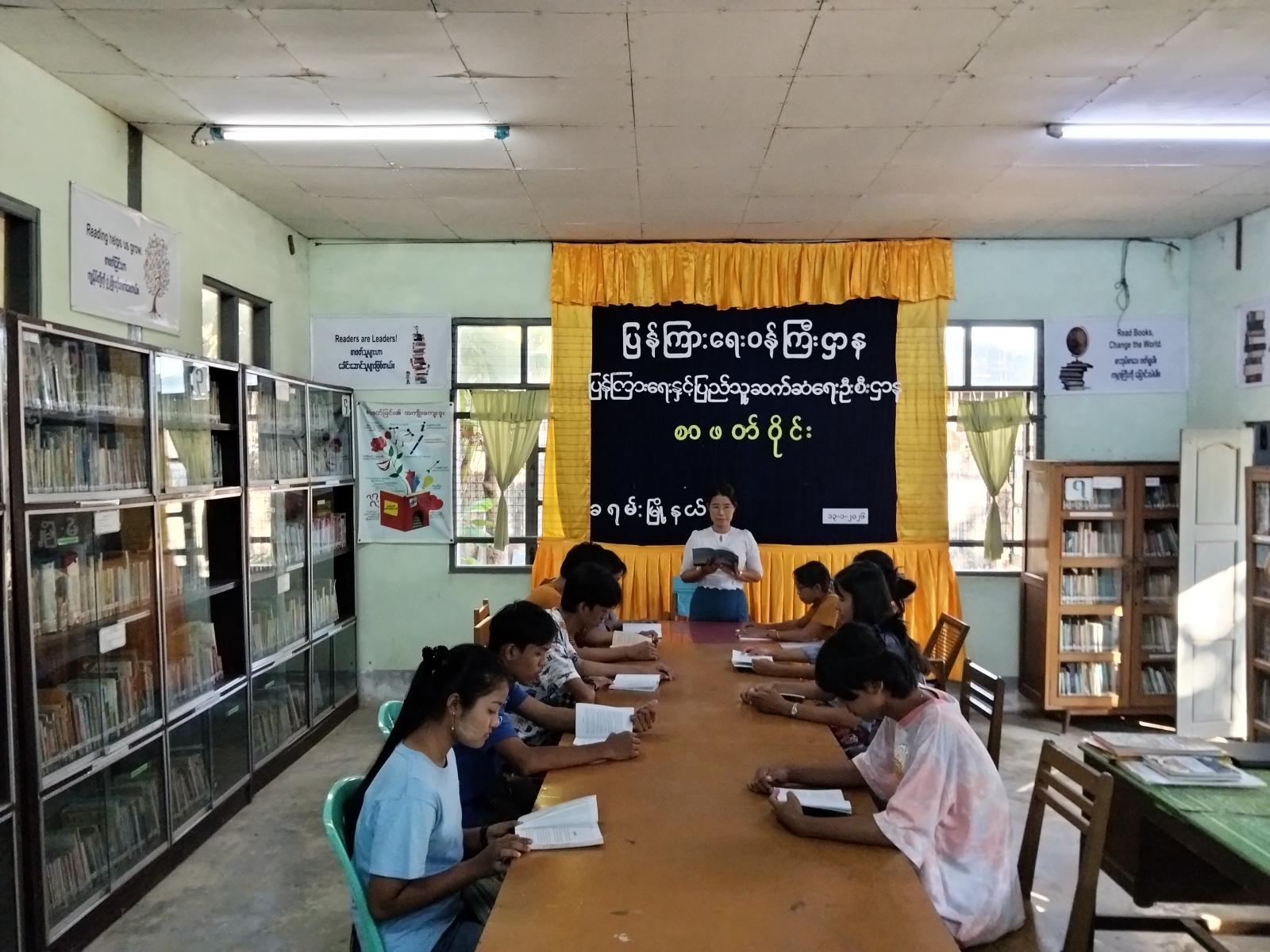 အဆိုပါစာဖတ်ဝိုင်းတွင် မြို့နယ်ပြန်ကြားရေးနှင့်ပြည်သူ့ဆက်ဆံရေးဦးစီးဌာန၊ ဦးစီးအရာရှိ ဒေါ်ခင်နှင်းဝေက စာဖတ်ဝိုင်းပြုလုပ်ရခြင်း၏ ရည်ရွယ်ချက်များကို ရှင်းလင်းနွေးပြီး Book Club အဖွဲ့ဝင် မောင်ပိုင်ပိုင်ဦးက စာရေးဆရာ ညီညီနိုင်ရေးသားသည့် "ယခုပဲပစ္စုပ္ပန်မှာနေလိုက်ပါ" စာအုပ်တွင် လူသားအားလုံး၏ ဘဝသည် မွေးဖွားခြင်းနှင့် သေဆုံးခြင်းကြားတွင် ကျင်လည်ရပ်တည်နေကြရသည့်အတွက် နေ့စဥ်ဘဝတွင်အမှားနှင့် အမှန်ဝေခွဲရခက်သည့် ပြဿနာများစွာကို ရင်ဆိုင်နေကြရမည်ဖြစ်ကြောင်း၊ မိမိတို့စိတ်ထဲတွင် အမြဲအသိ၊သတိတရားများ အမြဲနိုးကြားတက်ကြွနေဖို့လိုကြောင်းနှင့် သတိလက်လွတ်နေခြင်းသည် အကျိုးမဲ့အချည်းနှီးဖြစ်စေနိုင်ပါကြောင်းတို့ကို ရေးသားထားသော စာအုပ်ဖြစ်ပါကြောင်း စာအုပ်ပါအကြောင်းအရာများကို အကျယ်တဝင့် ရှင်းလင်းဆွေးနွေးခဲ့ကြသည်။