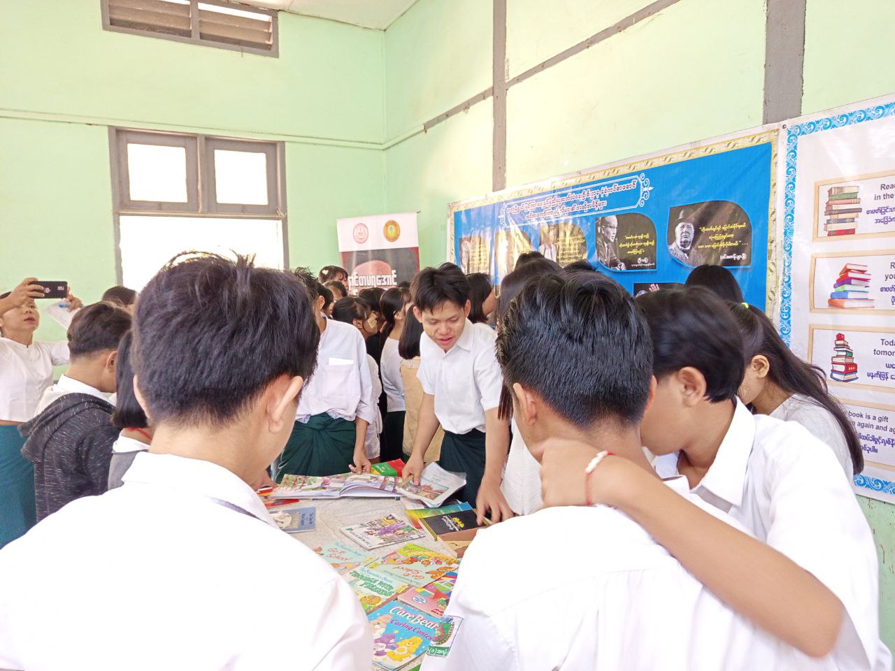 ပြန်ကြားရေးနှင့် ပြည်သူ့ဆက်ဆံရေးဦးစီးဌာနနှင့် အခြေခံပညာဦးစီးဌာနတို့ ပူးပေါင်း၍ ကျောင်းစာကြည့်တိုက်များ ဖွံ့ဖြိုးတိုးတက်ရေးနှင့် စာဖတ်ရှိန်မြှင့်တင်ရေးလှုပ်ရှားမှု ဟောပြောပွဲနှင့် ကာယ၊ ဥာဏပြိုင်ပွဲများကို ယမန်နေ့နံနက် ၁၀ နာရီအချိန်က အ.ထ.က (၁) အခြေခံပညာအထက်တန်းကျောင်းတွင် ကျင်းပခဲ့သည်။