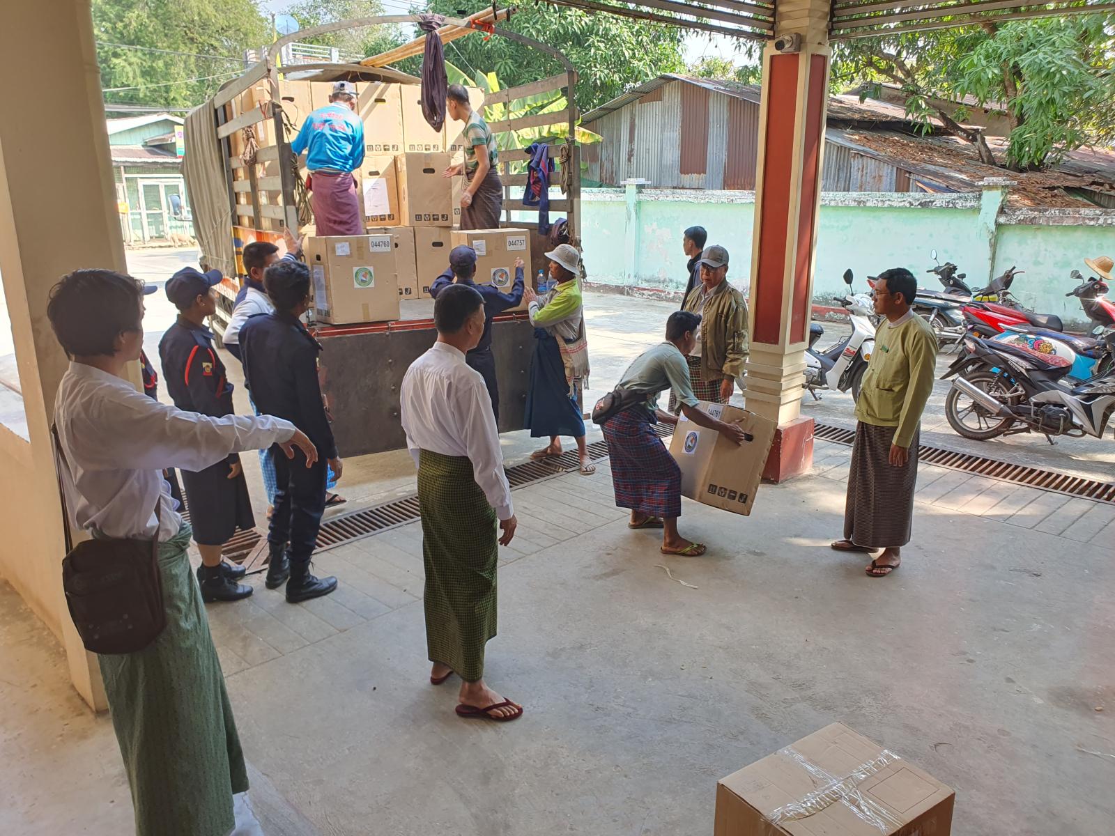 အဆိုပါ MEVM မြန်မာအီလက်ထရောနစ်မဲပေးစက်များ ရောက်ရှိမှုအား မြို့နယ်စီမံခန့်ခွဲရေးနှင့် အုပ်ချုပ်ရေးကော်မတီဥက္ကဋ္ဌ ဦးမြင့်လှိုင်နှင့် အဖွဲ့ဝင်များ၊ မြို့နယ်ရွေးကောက်ပွဲကော်မရှင်အဖွဲ့ခွဲဥက္ကဋ္ဌ ဦးမောင်မောင်သာနှင့် အဖွဲ့ဝင်များက ကြီးကြပ်ပြီး ဌာနဆိုင်ရာတာဝန်ရှိသူများနှင့် ဝန်ထမ်းများက စစ်ဆေးဆောင်ရွက်ခဲ့ကြောင်း သိရသည်။