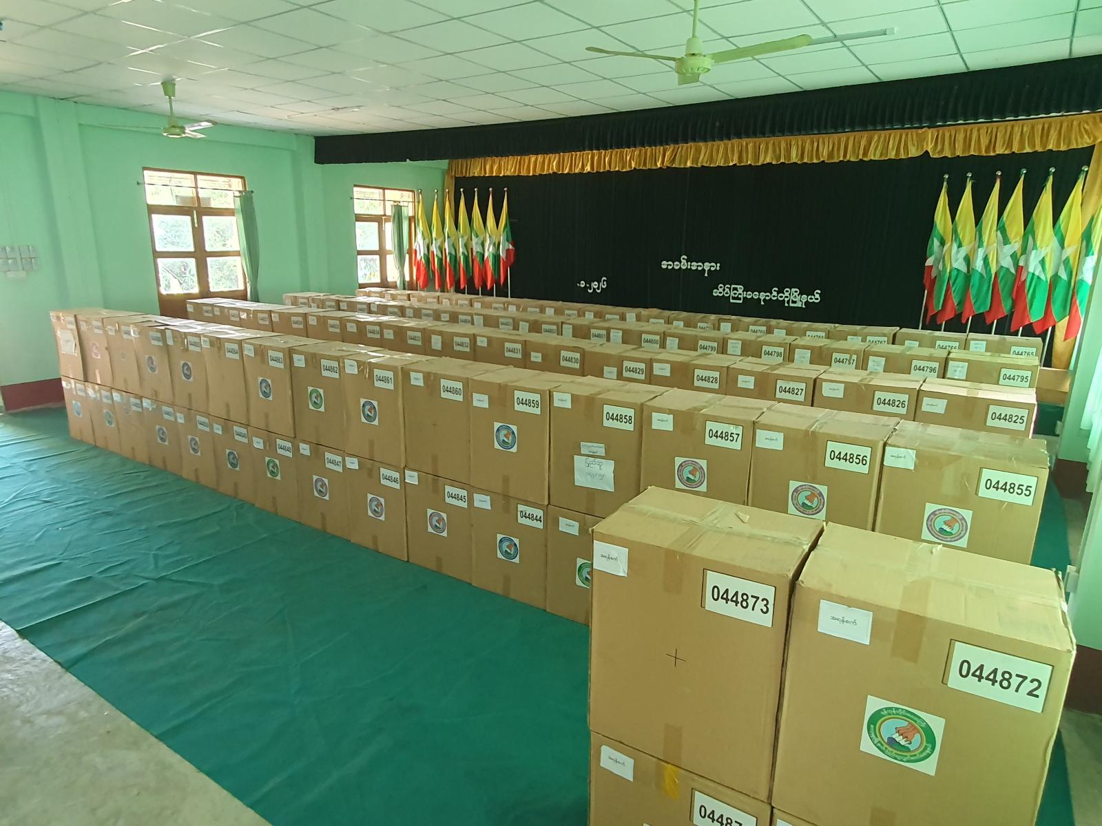 ရန်ကုန်တိုင်းဒေသကြီး၊ တွံတေးခရိုင်၊ ဆိပ်ကြီးခနောင်တိုမြို့နယ်၌ ၂၀၂၅ ခုနှစ် ပါတီစုံဒီမိုကရေစီအထွေထွေရွေးကောက်ပွဲ အပိုင်း (၃) ကို ဇန်နဝါရီလ (၂၅) ရက်နေ့တွင် ကျင်းပသွားမည်ဖြစ်ရာ ရွေးကောက်ပွဲတွင် အသုံးပြုမည့် MEVM မြန်မာအီလက်ထရောနစ်မဲပေးစက်များ ယမန်နေ့နံနက်ပိုင်းက မြို့နယ်အထွေထွေအုပ်ချုပ်ရေးဦးစီးဌာန၊ အစည်းအဝေးခန်းမသို့ ရောက်ရှိသည်။