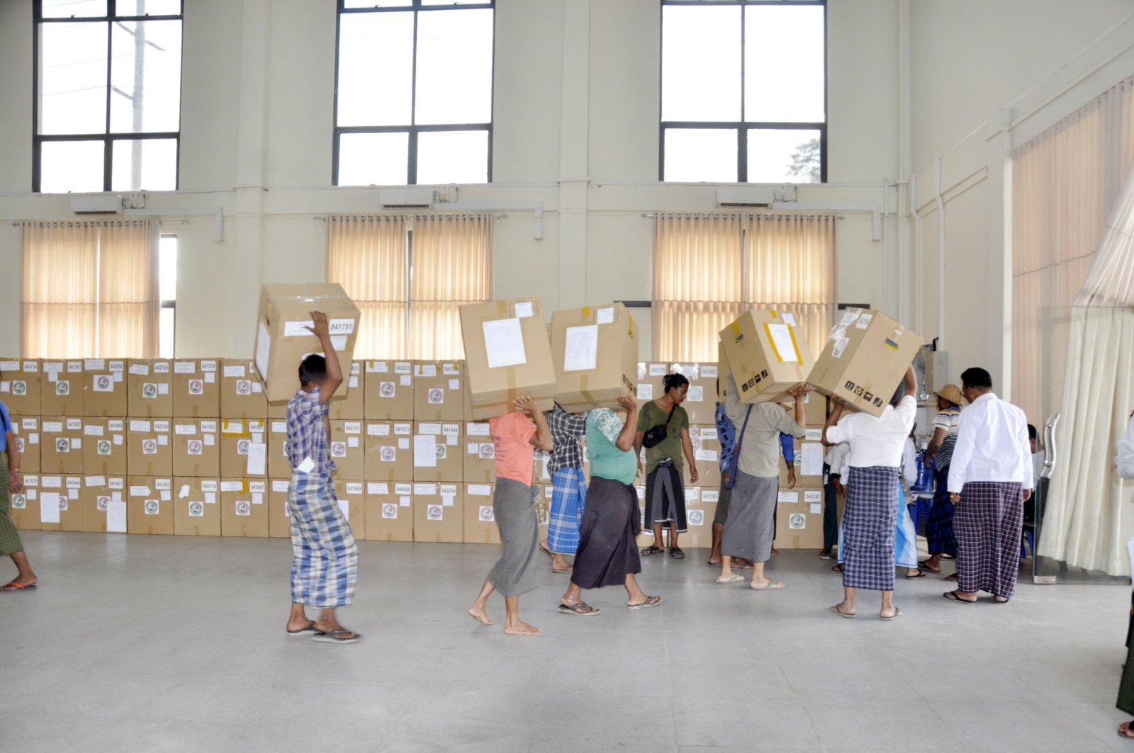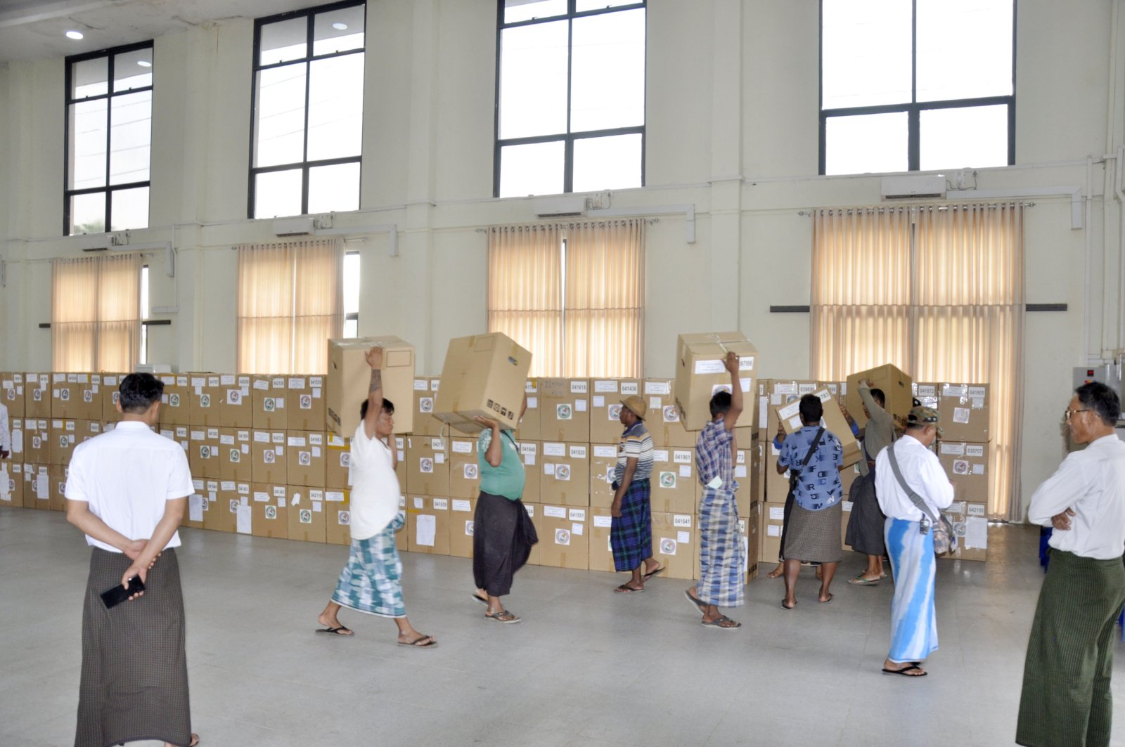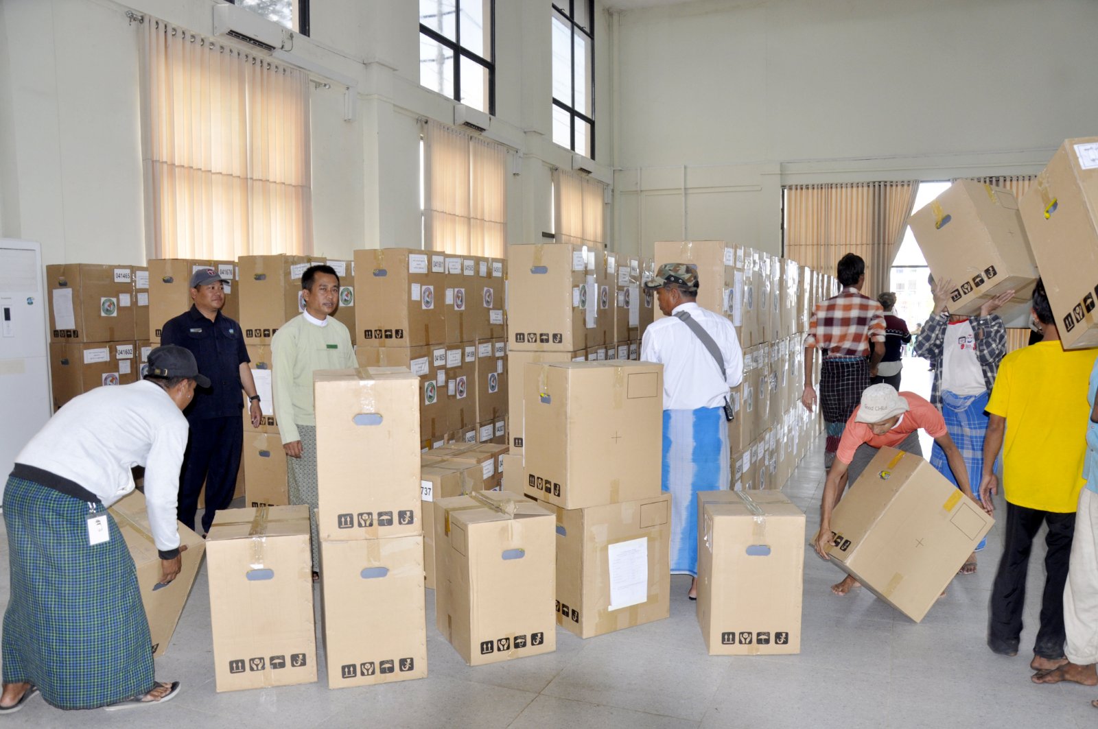 လွှဲပြောင်းရောက်ရှိလာသည့် စက်များထဲတွင် လှိုင်သာယာ (အနောက်ပိုင်း) မြို့နယ်အတွက် MEVM မဲပေးစက် (၅၈၃) လုံး၊ လှိုင်သာယာ (အရှေ့ပိုင်း) မြို့နယ်အတွက် MEVM မဲပေးစက် (၂၈) လုံးအား မြို့နယ်ခန်းမအတွင်းသို့ ပြောင်းရွှေ့သယ်ဆောင်ထားရှိခဲ့ပြီး ရွှေပြည်သာမြို့နယ်ရွေးကောက်ပွဲကော်မရှင်အဖွဲ့ခွဲရုံးမှ ဒုတိယဦးစီးမှူး ဒေါ်ထက်စုလှိုင်မှ MEVM မဲပေးစက် (၆၁၁) လုံးအား လှိုင်သာယာ (အနောက်ပိုင်း) မြို့နယ်ရွေးကောက်ပွဲကော်မရှင်အဖွဲ့ခွဲရုံးမှ ဒုတိယဦးစီးမှူး ဒေါ်စန်းစန်းမော်အား လွှဲပြောင်းပေးအပ်ခဲ့ပါကြောင်း သတင်းရရှိသည်။
