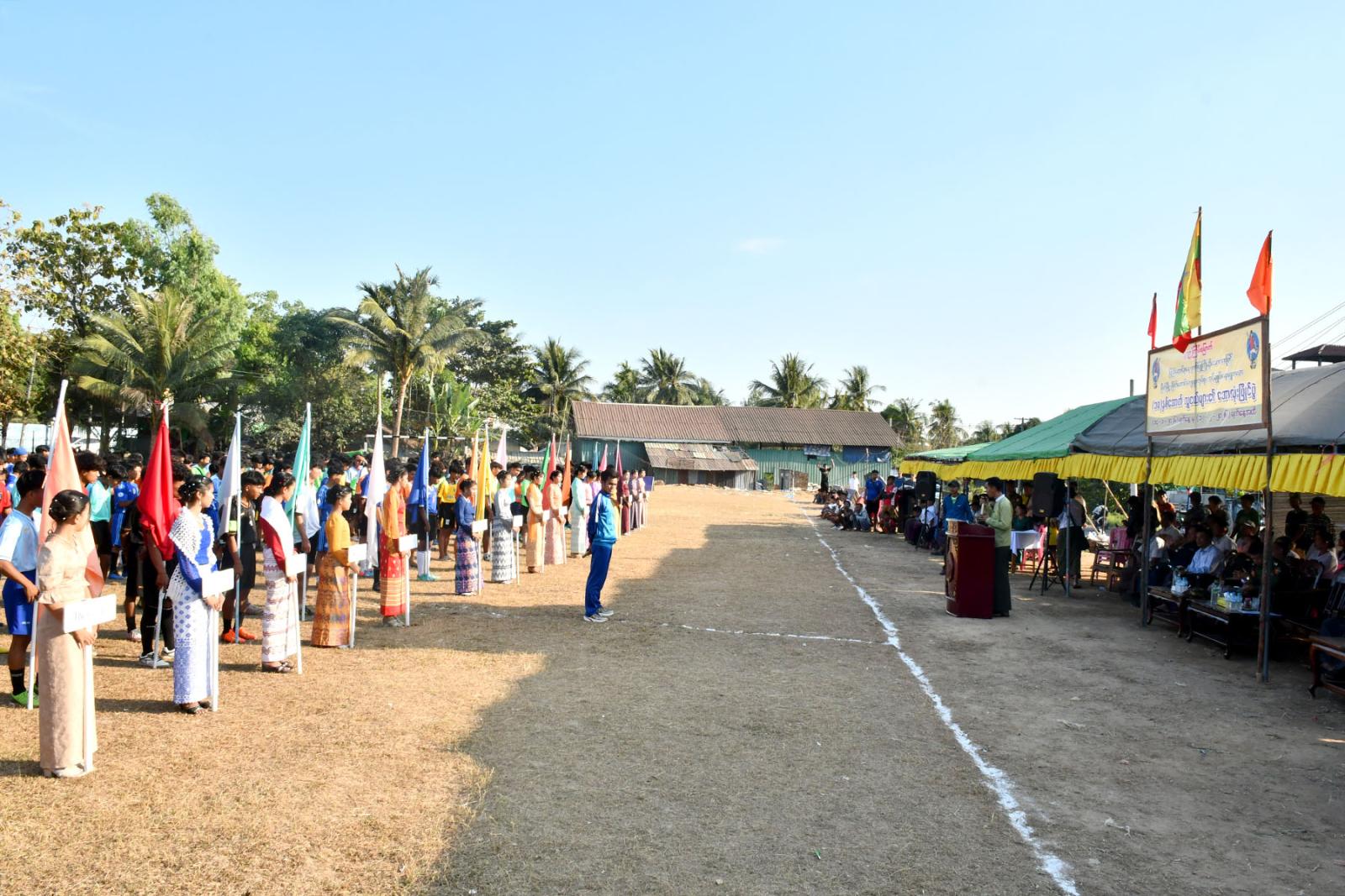 ဘောလုံးပြိုင်ပွဲကို မြို့နယ်စီမံခန့်ခွဲရေးနှင့်အုပ်ချုပ်ရေးကော်မတီဥက္ကဋ္ဌ ဦးပြည်ဟိန်းကျော်က အမှာစကားပြောကြား၍ မြို့နယ်အားကစားမှူး ဦးထွန်းရှိန် က ပြိုင်ပွဲစည်းမျဉ်းစည်းကမ်း များကို ရှင်းလင်းပြောကြားသည်။