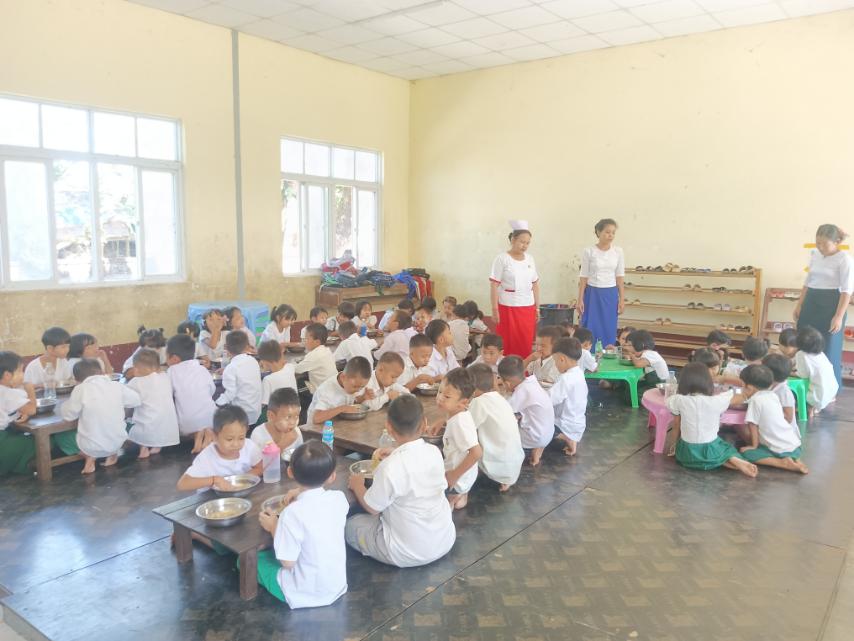 ထိုသို့ဆောင်ရွက်ရာတွင် အခြေခံပညာကျောင်းများရှိ ကျောင်းအုပ်ဆရာကြီးများနှင့် ဆရာမများက KG ကျောင်းသား၊ ကျောင်းသူတို့အား အသားဓါတ်၊ အဆီဓါတ်၊ ဗီတာမင်ဓါတ်နှင့် ရေဓါတ်စသည်တို့ပါဝင်သော အာဟာရဖြစ်စေမည့် စားသောက်ဖွယ်ရာများကို ကျွေးမွေးခဲ့ကြသည်။