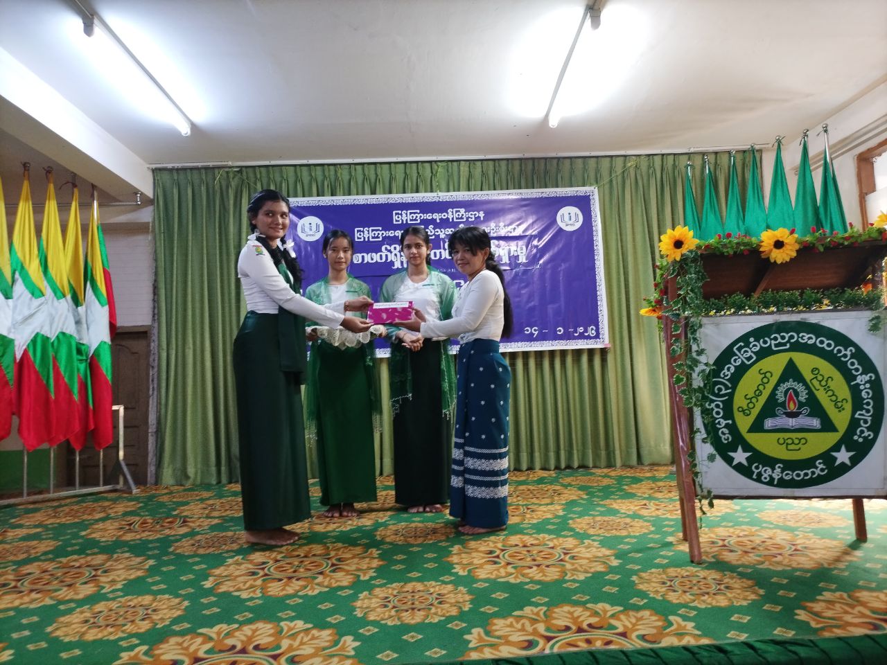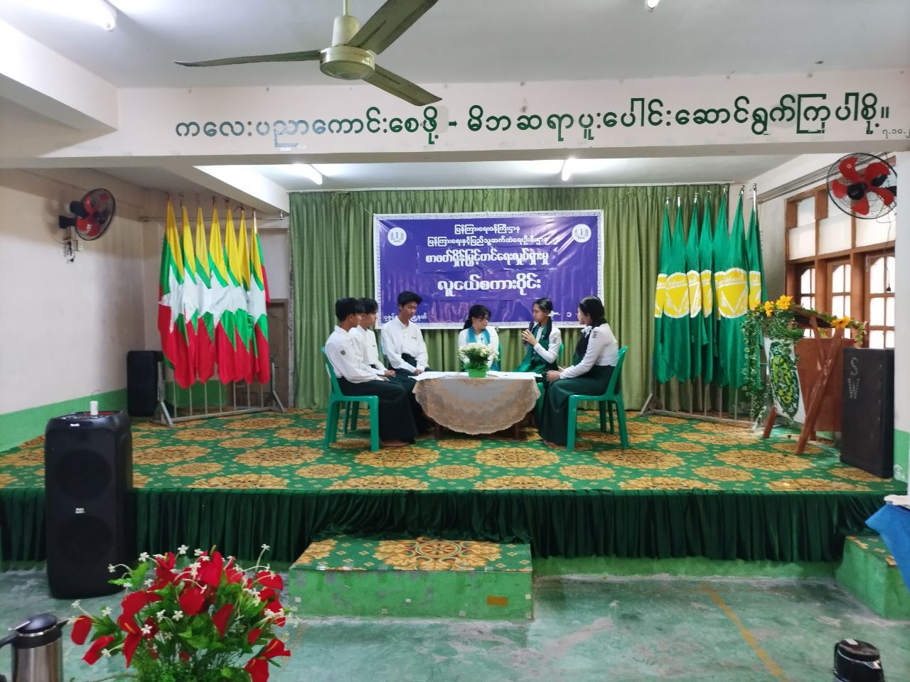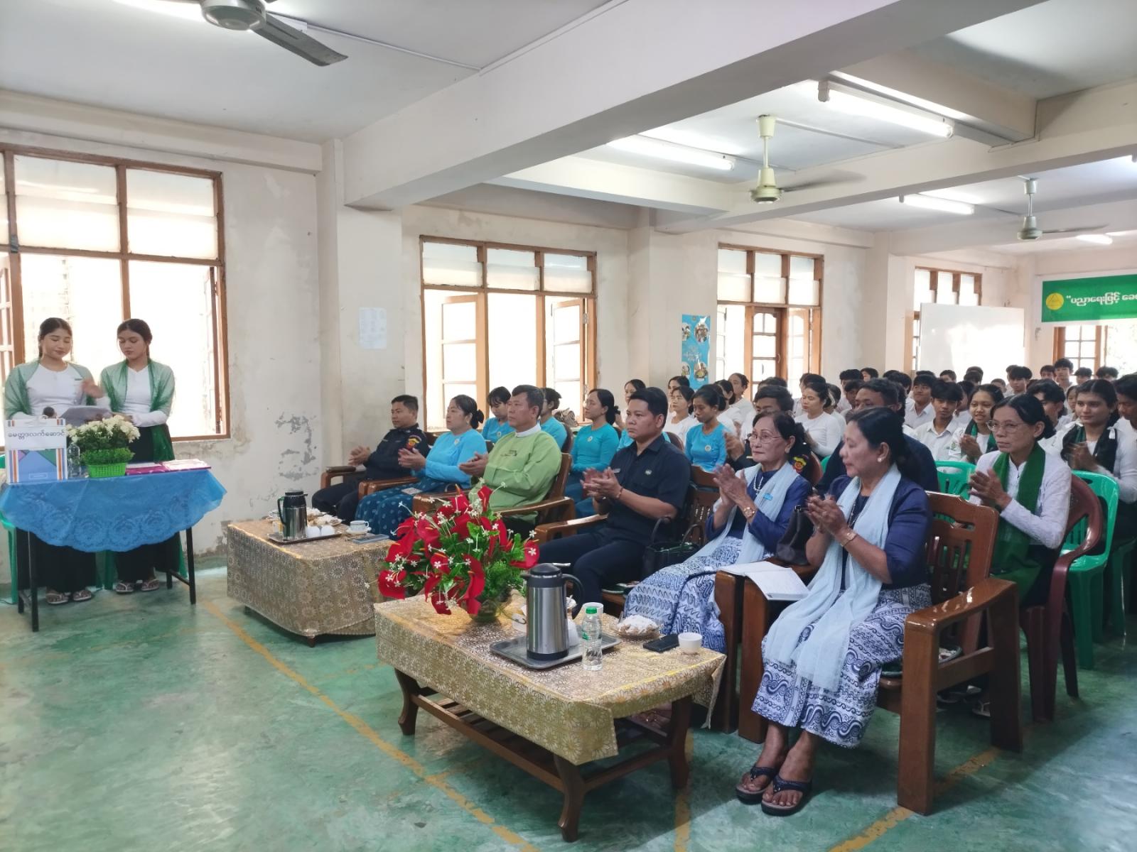 ရှေးဦးစွာ မြို့နယ်စီမံခန့်ခွဲရေးနှင့်အုပ်ချုပ်ရေးကော်မတီ ဥက္ကဋ္ဌ ဦးဇော်မိုးအောင်မှ အမှာစကားပြောကြားခဲ့ပြီးနောက် အမှတ်(၃) အခြေခံ ပညာအထက်တန်းကျောင်းအတွက် ငွေကျပ် ၁,၁၀၀,၀၀၀/- (ကျပ်တစ်ဆယ်တစ်သိန်းတိတိ) တန်ဖိုးရှိသော စားပွဲတင်တင်းနစ်ခုံအား မြို့နယ်စီမံခန့်ခွဲရေးနှင့်အုပ်ချုပ်ရေးကော်မတီဥက္ကဋ္ဌ ဦးဇော်မိုးအောင်နှင့် မြို့နယ်စည်ပင်သာယာအုပ်ချုပ်ရေးမှူး ဦးကြည်ဖေလင်းတို့ကလည်းကောင်း၊ ကျောင်းစာကြည့်တိုက်အတွက် ငွေကျပ် ၅၀၀၀၀/- (ကျပ်ငါးသောင်း) တန်ဖိုးရှိသော စာအုပ်(၂၀)အုပ်ကို မြို့နယ်အခွန်ဦးစီးဌာနမှူး ဦးမြဦးမှလည်းကောင်း ပေးအပ်လှူဒါန်းခဲ့ရာ အမှတ် (၃)အခြေခံပညာအထက်တန်းကျောင်း ကျောင်းအုပ်ဆရာမကြီး ဒေါ်သန်းသန်းမြင့်က လက်ခံရယူပြီး ကျေးဇူးတင်စကားပြောကြားခဲ့သည်။ ဆက်လက်ပြီး လူငယ်စကားဝိုင်းကိုစတင်ခဲ့ရာ မြို့နယ် ပြန်ကြား ရေးနှင့်ပြည်သူ့ဆက်ဆံရေးဦးစီးဌာန ဦးစီးအရာရှိ ဒေါ်ဟန်စုယဉ်မှ စေ့စပ်ညှိနှိုင်းသူအဖြစ်ဆောင်ရွက်ခဲ့ပြီး အမှတ်(၃)အခြေခံပညာအထက်တန်းကျောင်းမှ Grade-11 ကျောင်းသား၊ ကျောင်းသူလေးများက လူငယ်နှင့်ယဉ်ကျေးမှု၊ လူငယ်နှင့်စာပေ၊ လူငယ်နှင့်ကျန်းမာရေး၊ လူငယ်နှင့် အားကစား၊ လူငယ်နှင့်စာရိတ္တ၊ လူငယ်နှင့်နည်းပညာခေါင်းစဉ်များဖြင့် အသီးသီးဆွေးနွေးခဲ့ကြသည်။