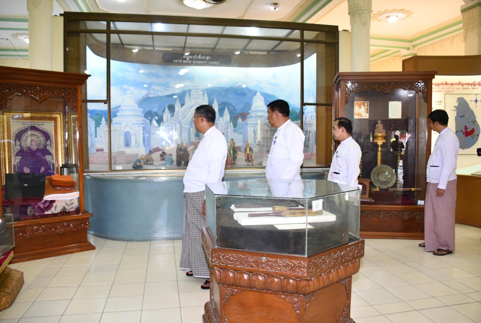 ကျောင်းဆောင်ကြီး လေးဆောင်အဆင့်မြှင့်တင်မွမ်းမံခြင်းလုပ်ငန်း (Phase11) ဆောင်ရွက်နေမှုများနှင့်စပ်လျဉ်း၍ ရှင်းလင်းတင်ပြကြရာ ပြည်ထောင်စုဝန်ကြီးက ကျောင်းဆောင်ကြီးလေးဆောင်သည် ဆဋ္ဌသင်္ဂါယနာတင်စဉ်ကပင် ဆောက်လုပ်ခဲ့သော သမိုင်းဝင်အဆောက်အအုံများဖြစ်သဖြင့် နိုင်ငံတော်အကြီးအကဲ၏ လမ်းညွှန်ချက်များနှင့်အညီ ဆရာတော်ကြီးများ သီတင်းသုံးမည့် အခန်းများနှင့် ကျောင်းဆောင်ကြီးများကို အရည်အသွေးပြည့်မီပြီး သတ်မှတ်စံချိန်စံနှုန်းများနှင့် ကိုက်ညီသော ပစ္စည်းများကိုသာ အသုံးပြုဆောင်ရွက်ရန် မှာကြားသည်။