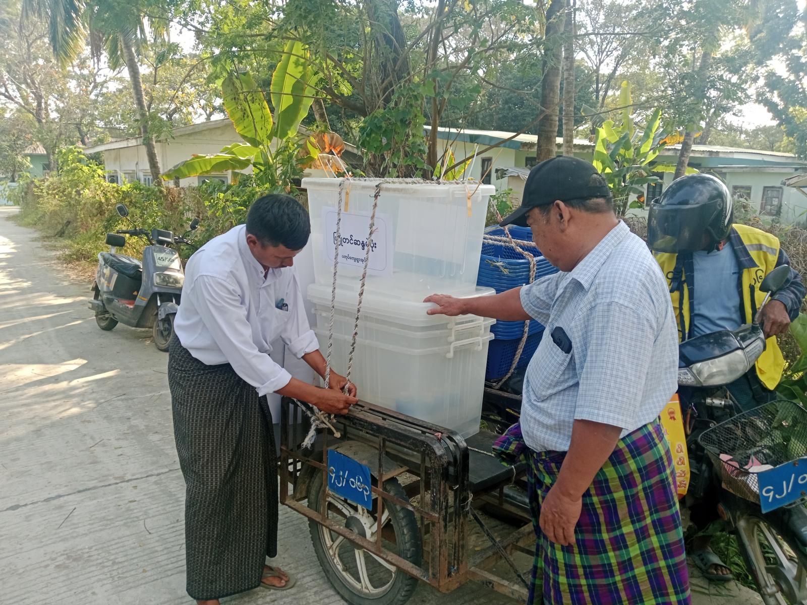 ထိုသို့ ပေးအပ်ရာတွင် မဲပုံး၊ ပလပ်စတစ်ခြင်းတောင်း၊ ဆန္ဒပြုခန်း၊ မင်ဗူး၊ လုံခြုံရေးကြိုးများနှင့် ကြိုတင်မဲလက်မှတ်များကို ရပ်ကွက်ကျေးရွာအတွင်းရှိ ရပ်/ကျေး စာရေးများထံ စနစ်တကျပေးအပ်ခဲ့ကြောင်း သိရပြီး ကြိုတင်မဲများကို ၁၅-၁-၂၀၂၆ ရက်နေ့မှ ၂၄-၁-၂၀၂၆ ရက်နေ့ထိ သက်ဆိုင်ရာမဲရုံများတွင် မဲရုံတာဝန်ကျဝန်ထမ်းများ၊ သက်ကြီးရွယ်အိုများ မဲပေးနိုင်ကြောင်း သိရသည်။